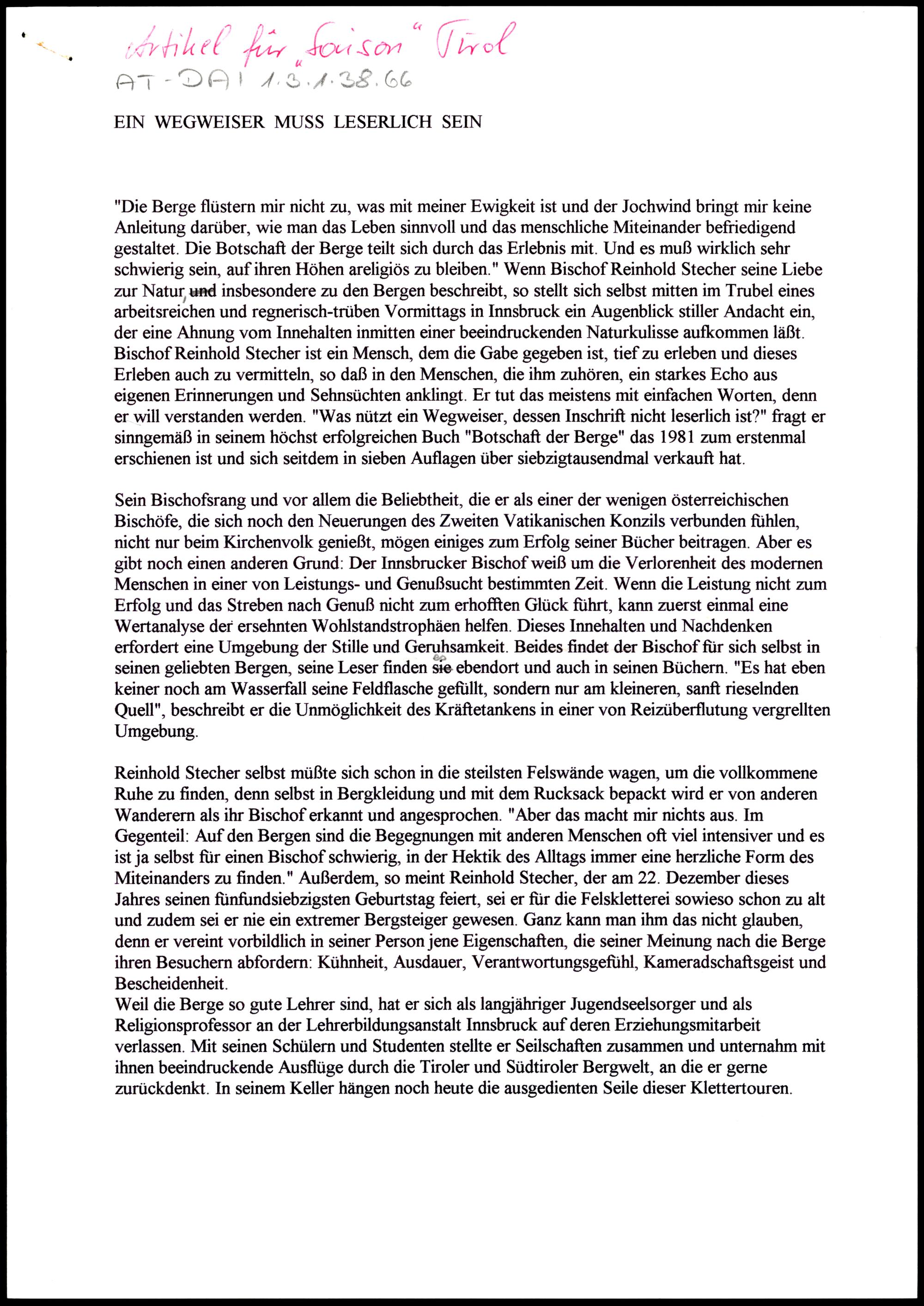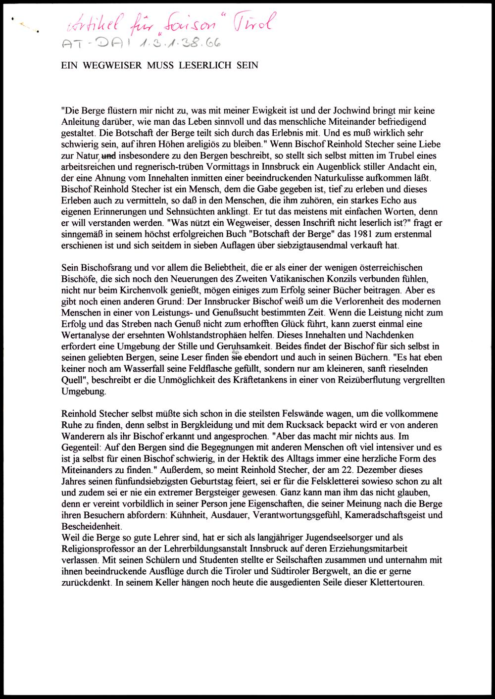 Nachlass Bischof Stecher
