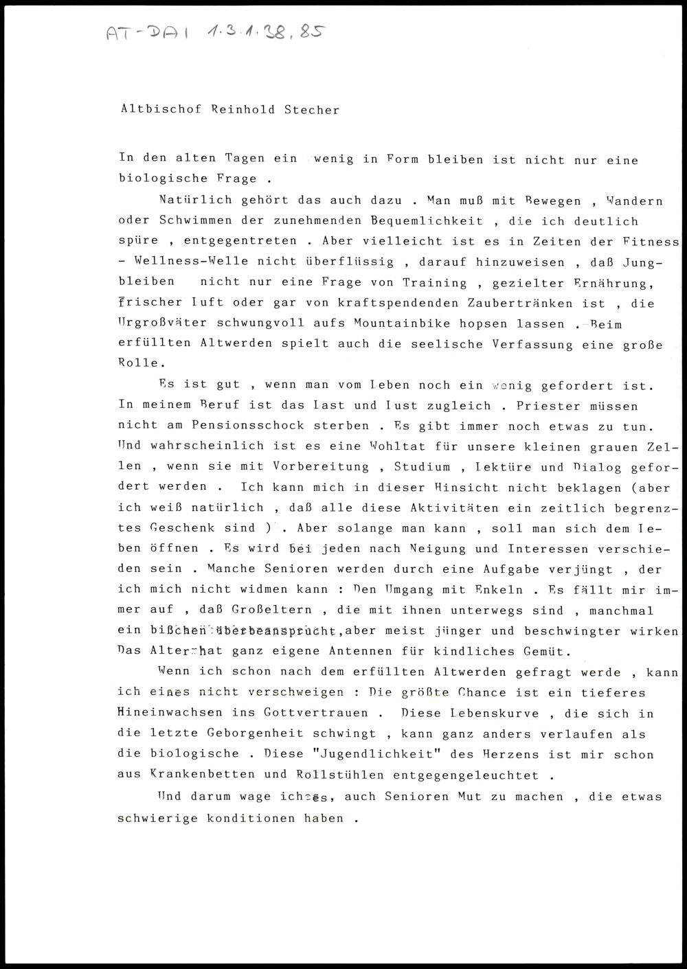 Nachlass Bischof Stecher