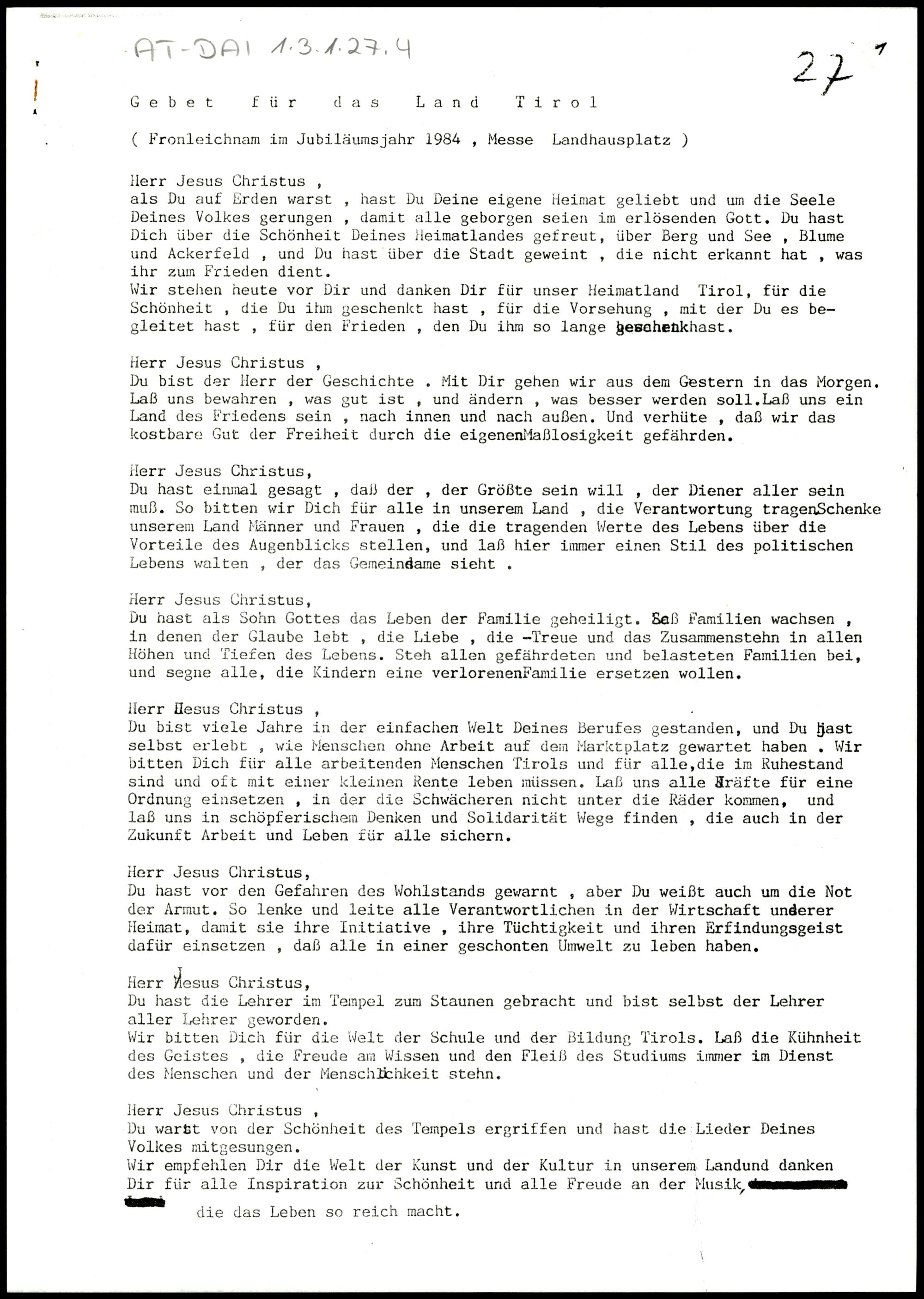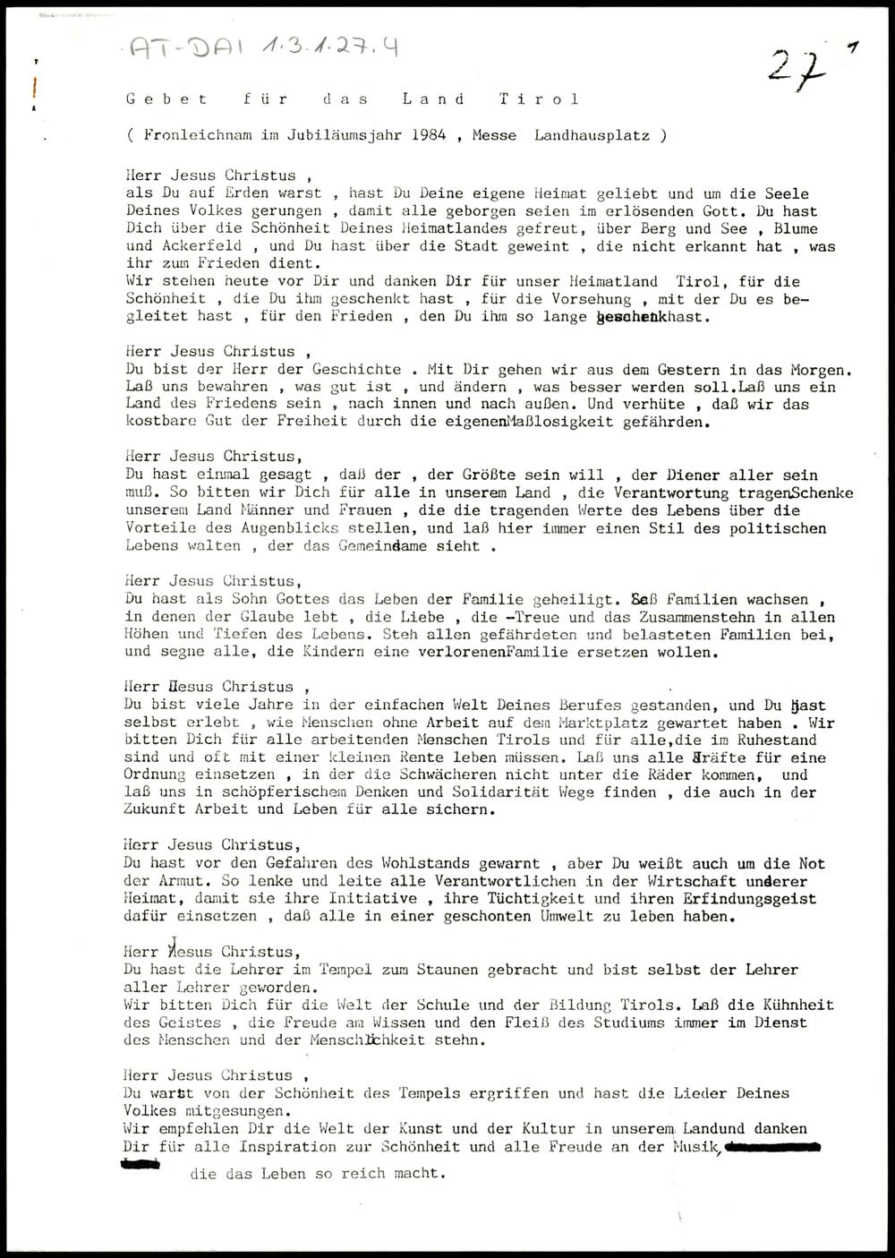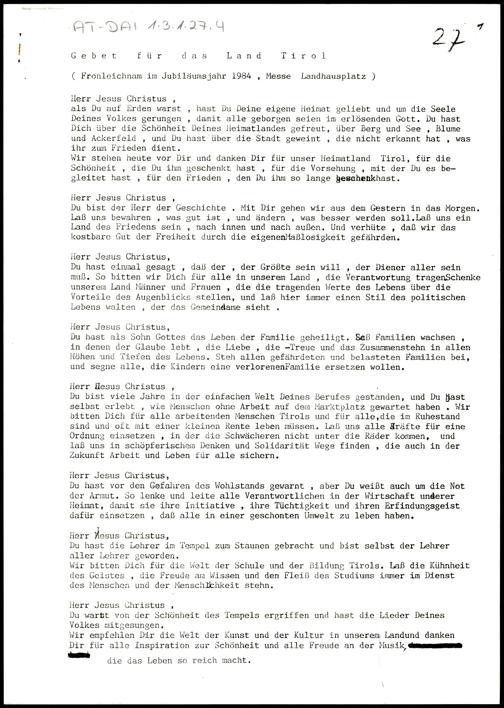 Gebet für das Land Tirol