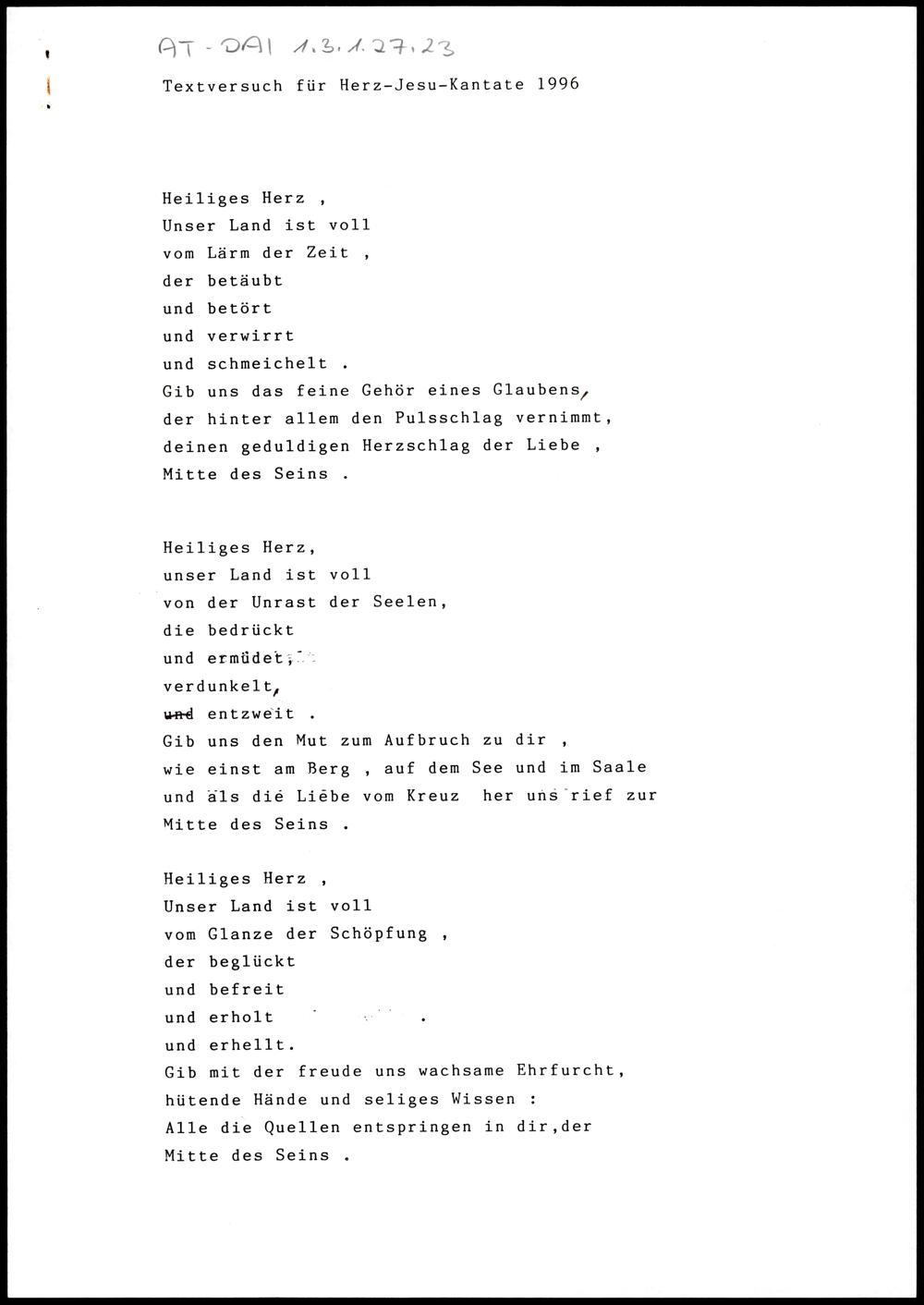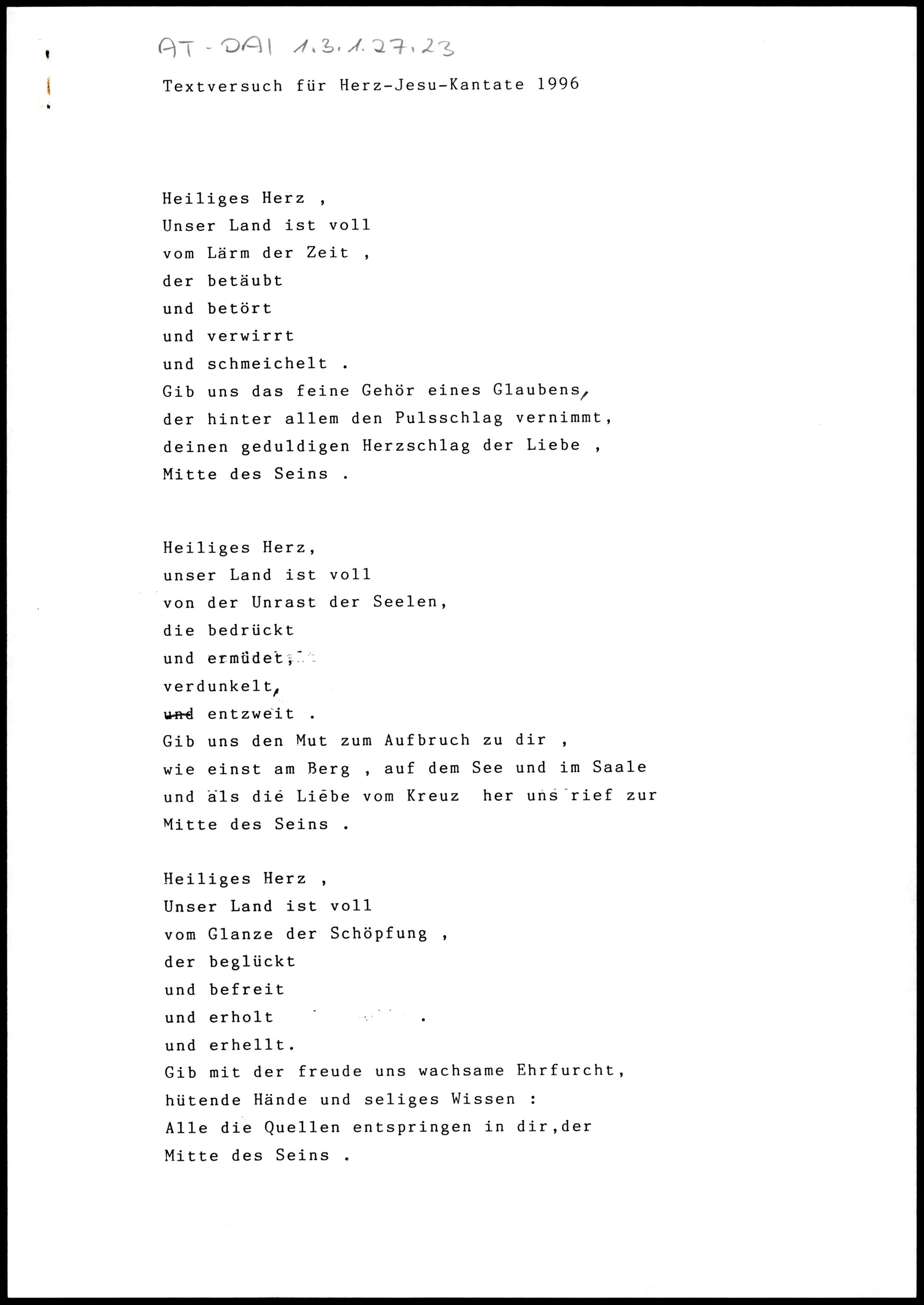 Textversuch für Herz-Jesu-Kantate