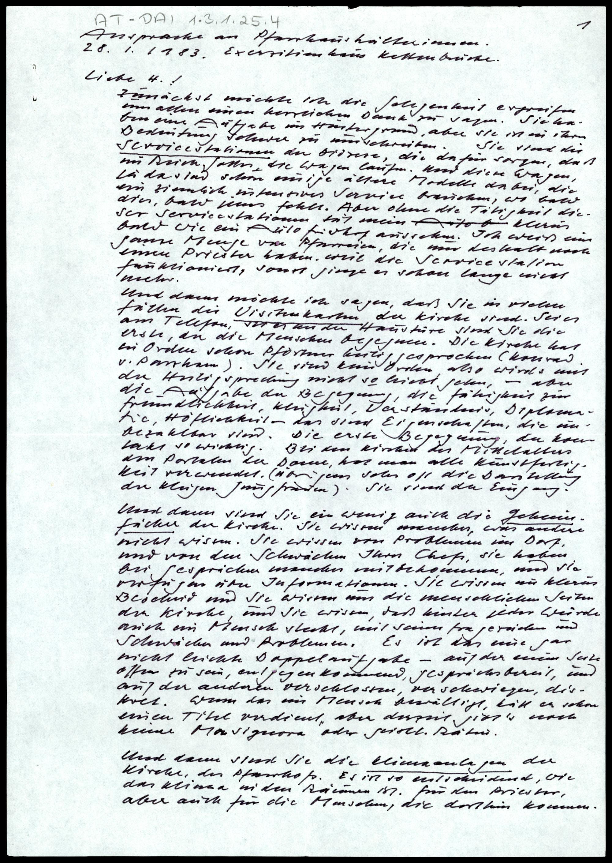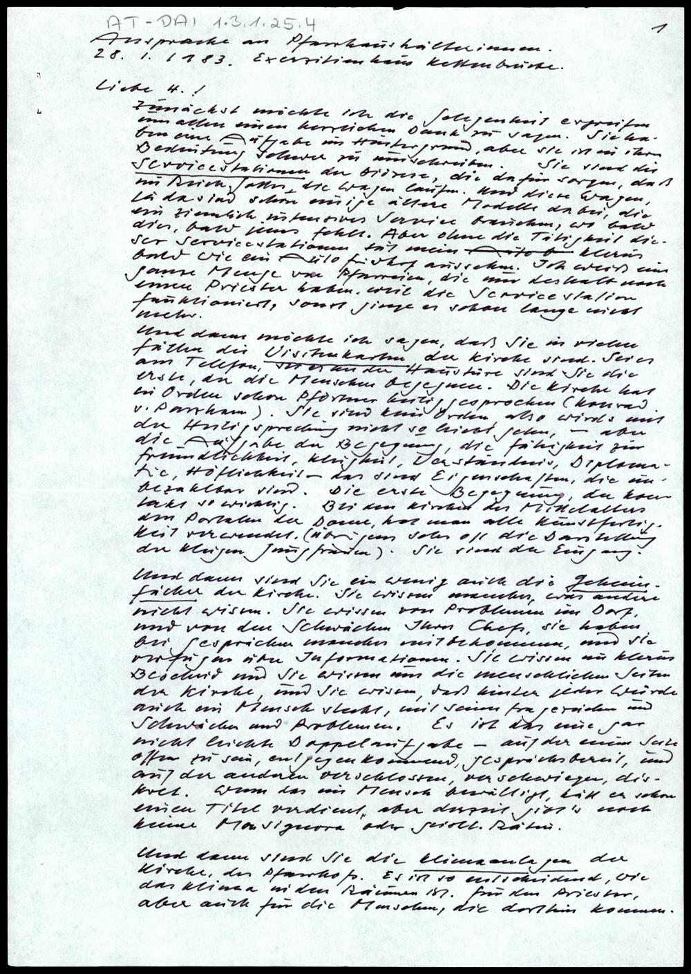 Ansprache an Pfarrhaushälterinnen