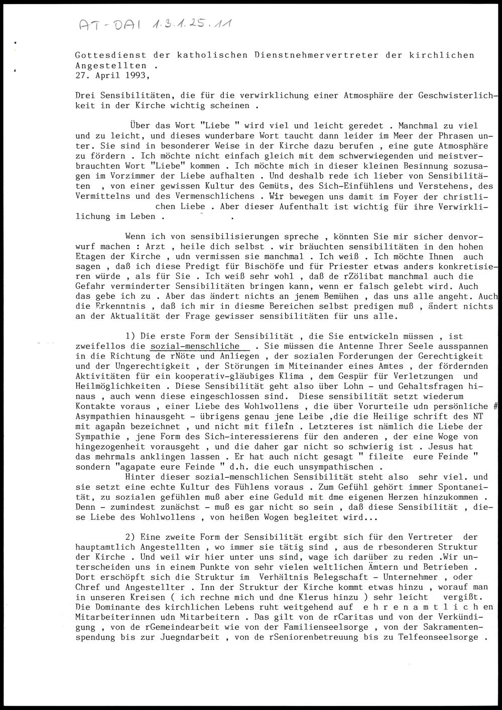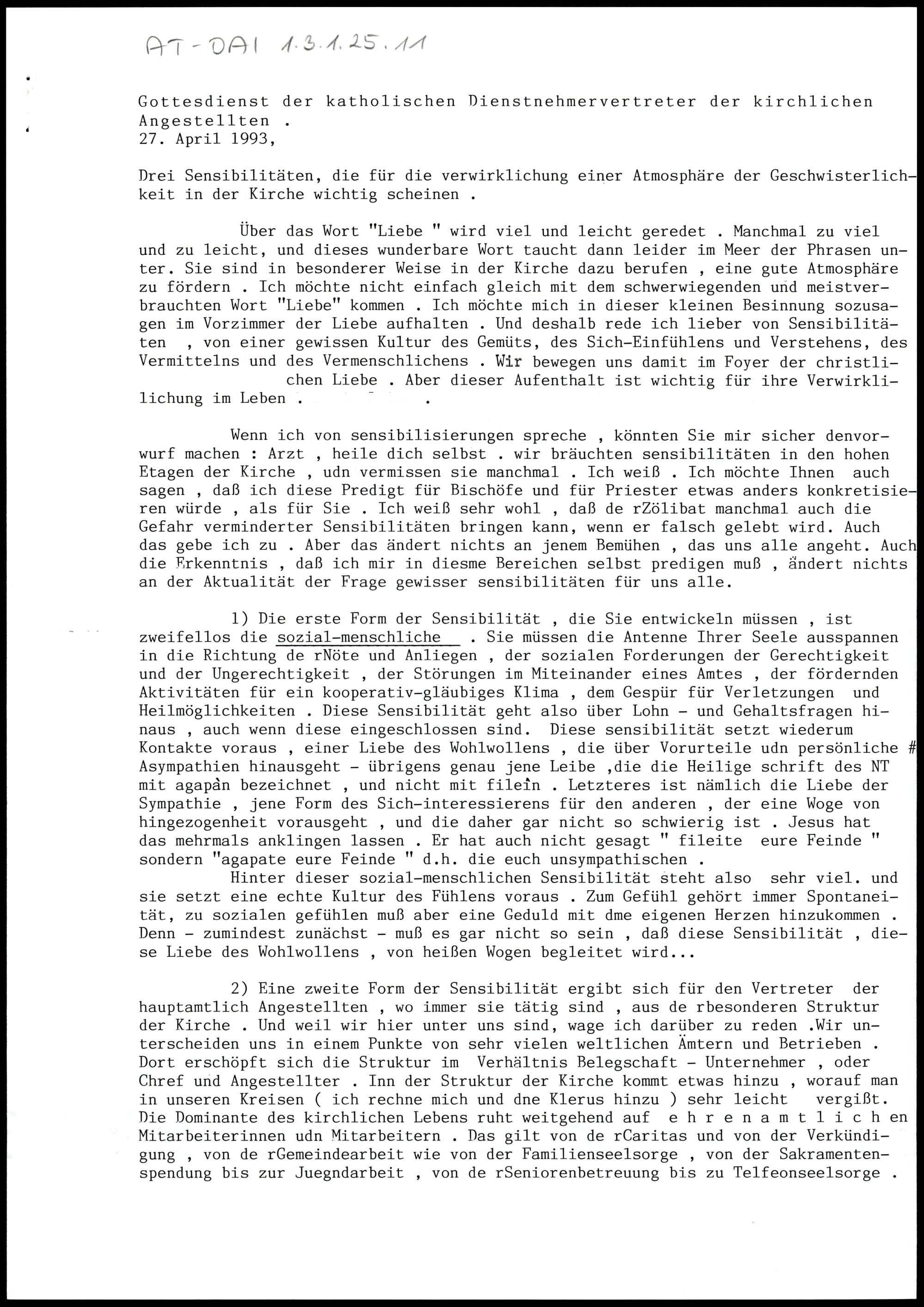 Gottesdienst der katholischen Dienstnehmervertreter der kirchlichen Angestellten