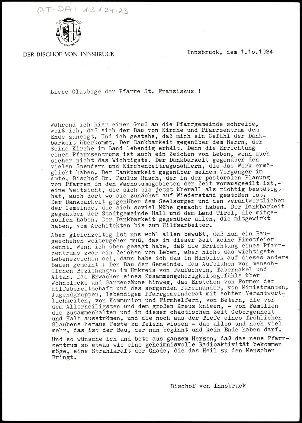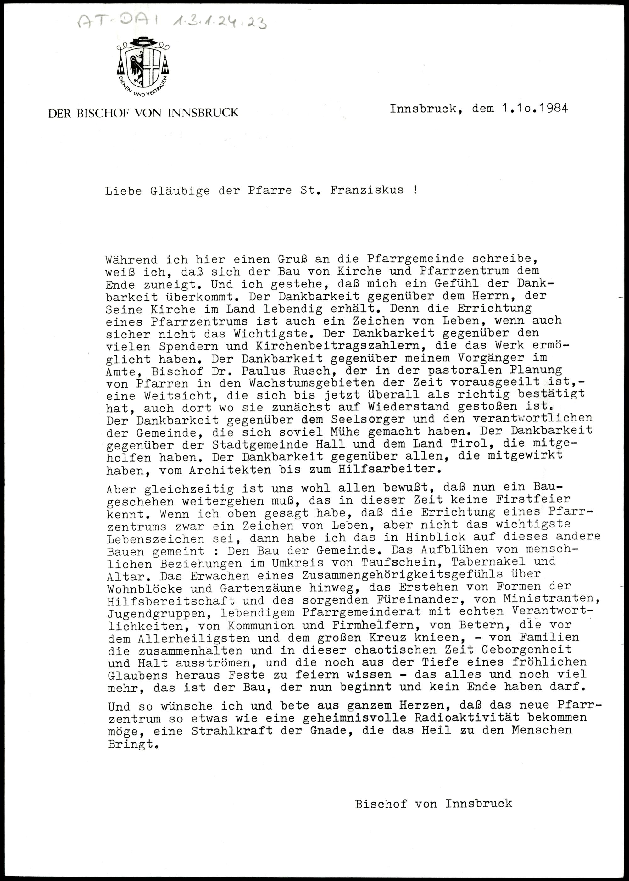 Liebe Gläubige der Pfarre St. Franziskus!