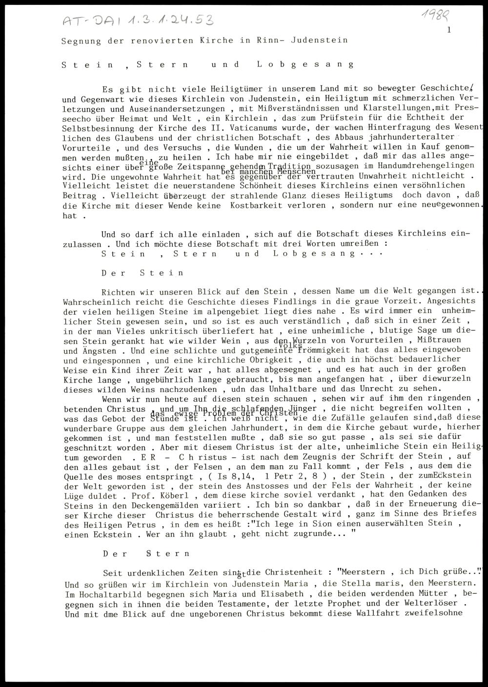 Stein, Stern und Lobgesang