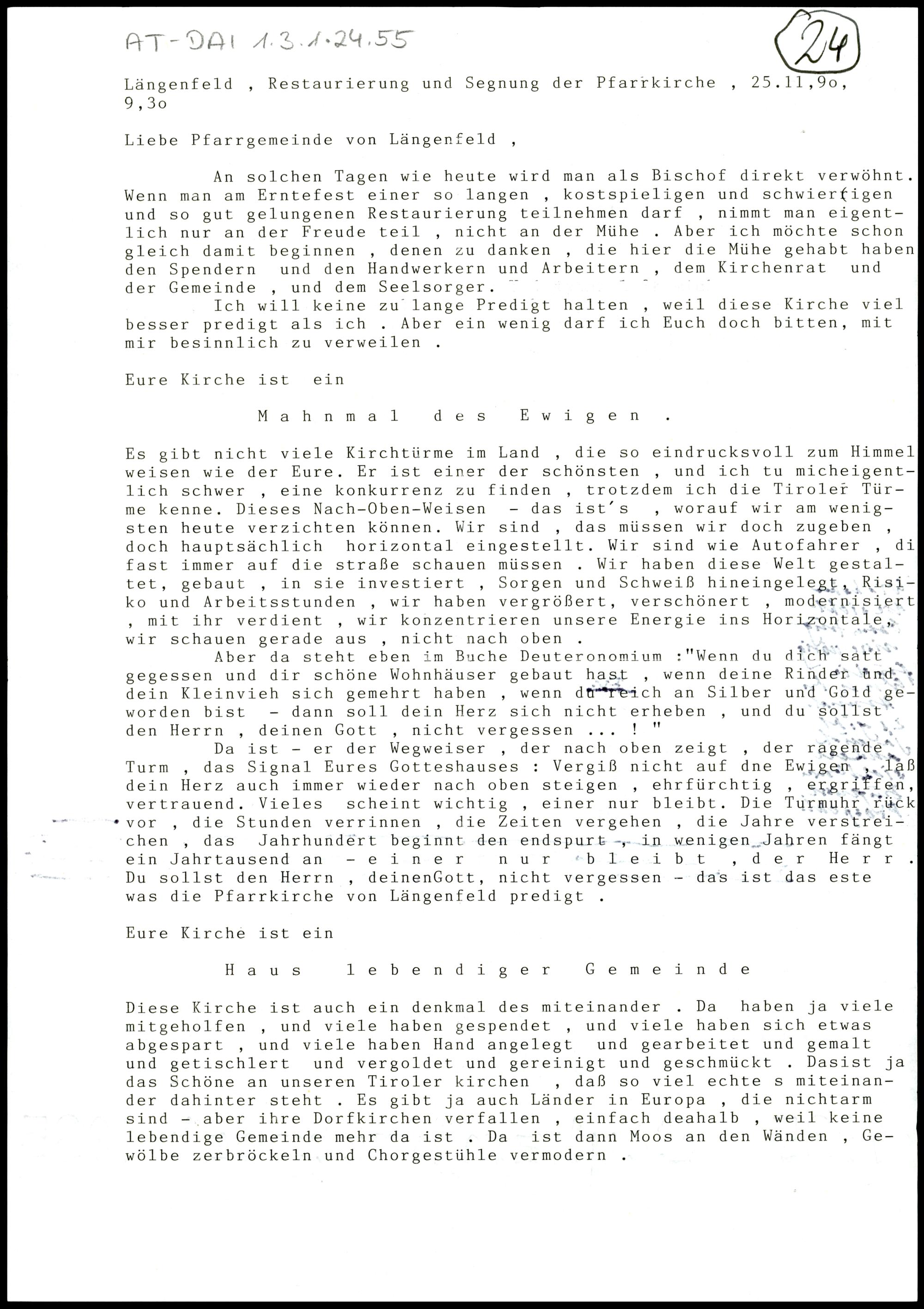 Restaurierung und Segnung der Pfarrkirche Längenfeld