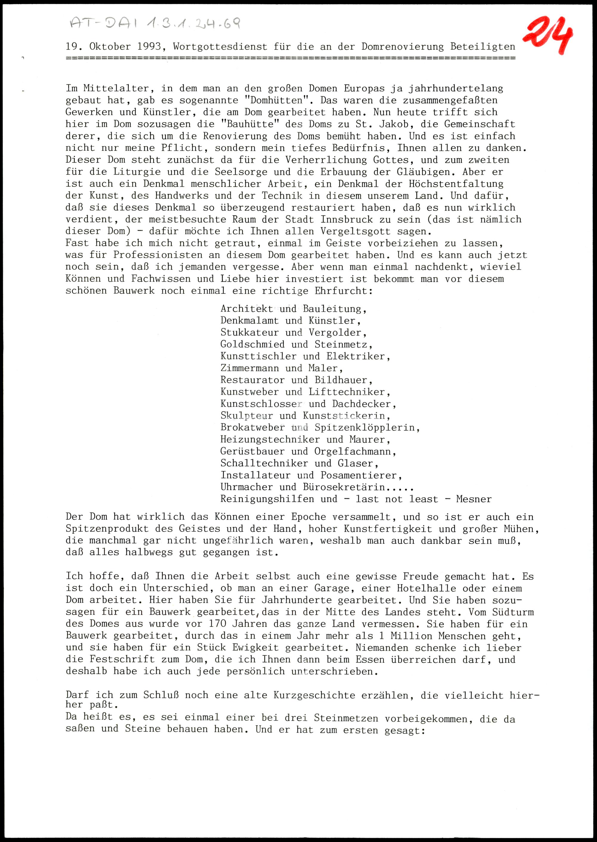 Wortgottesdienst für die an der Domrenovierung Beteiligten