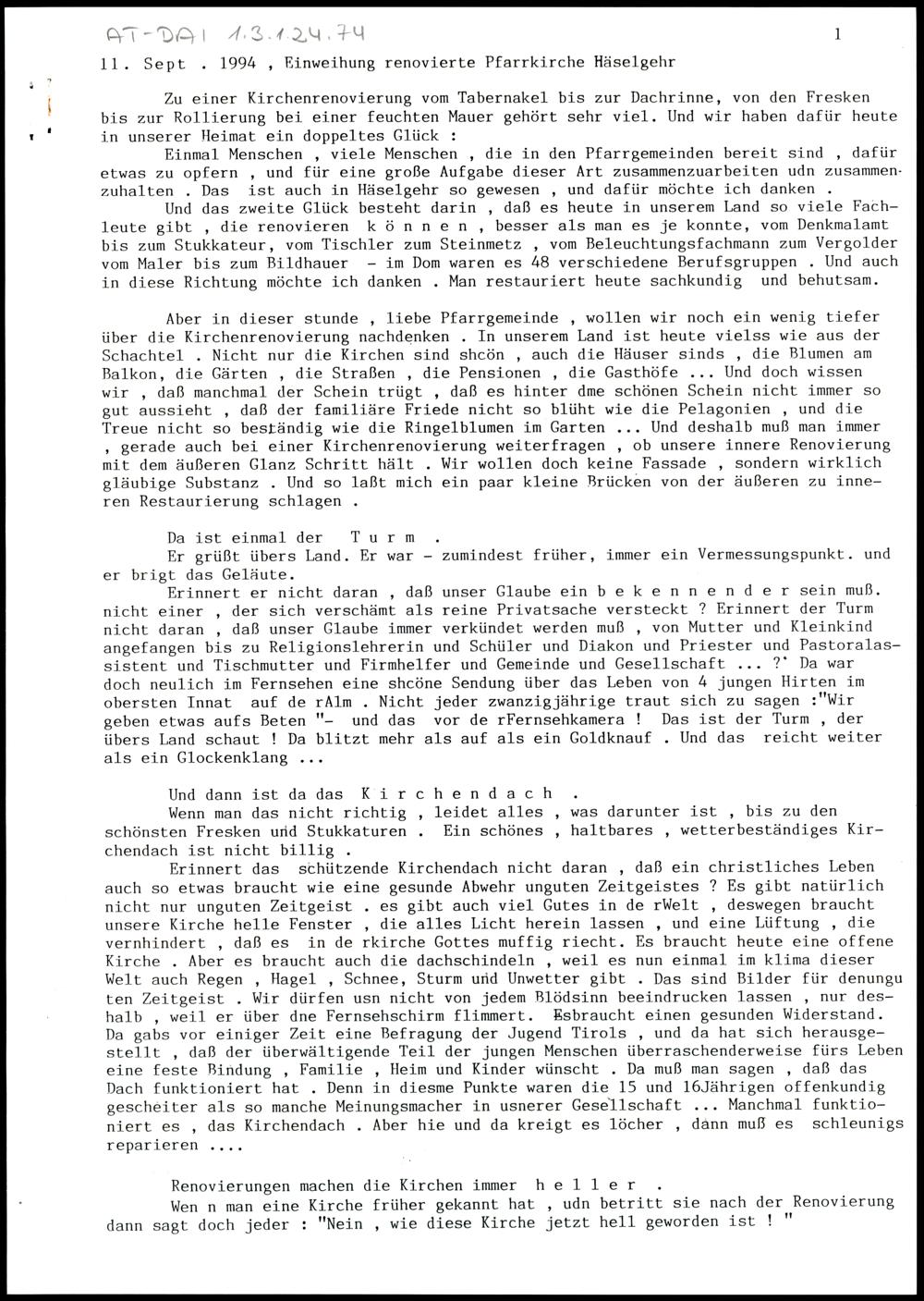 Einweihung renovierte Pfarrkirche Häselgehr
