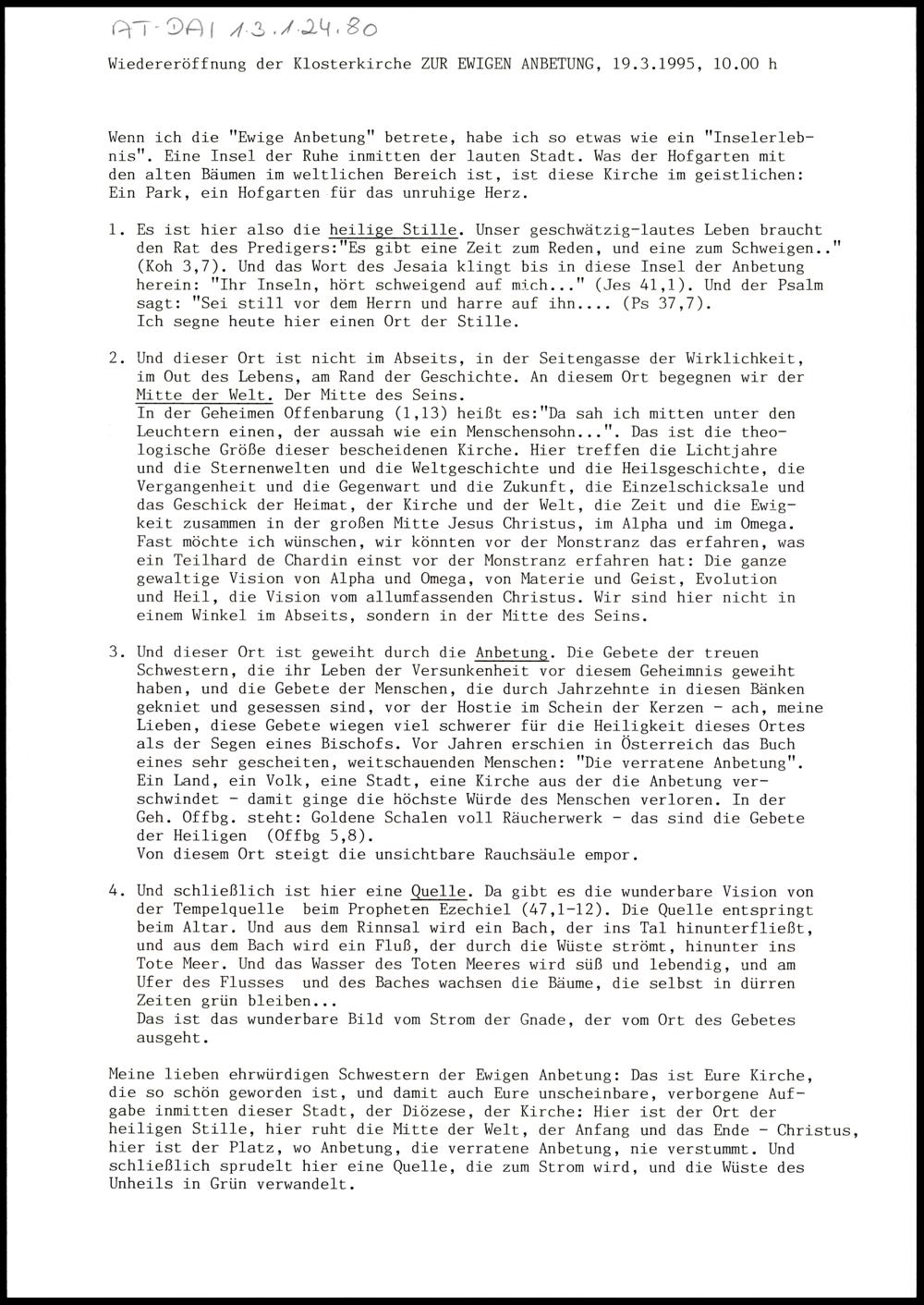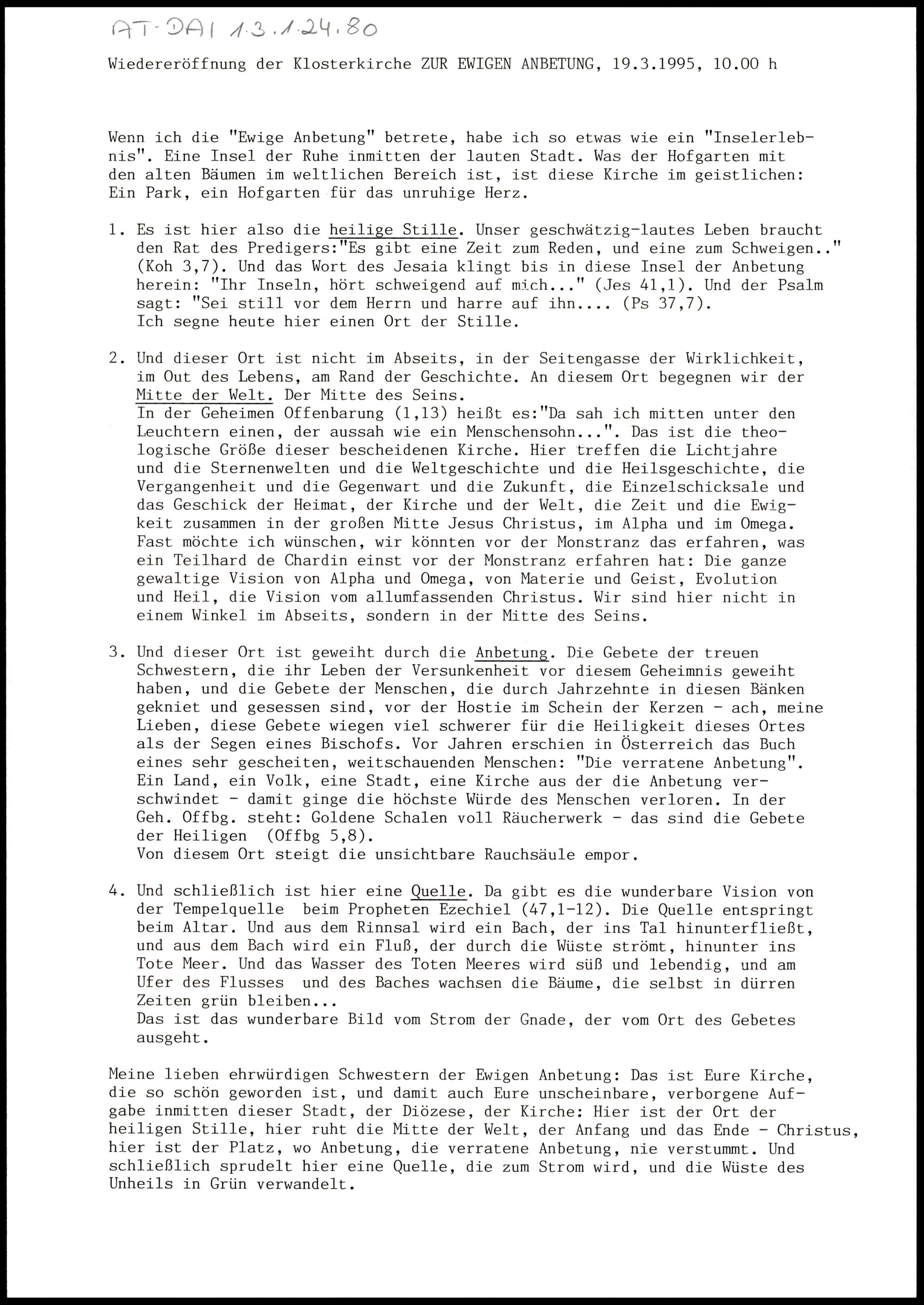 Wiedereröffnung der Klosterkirche "Zur ewigen Anbetung"