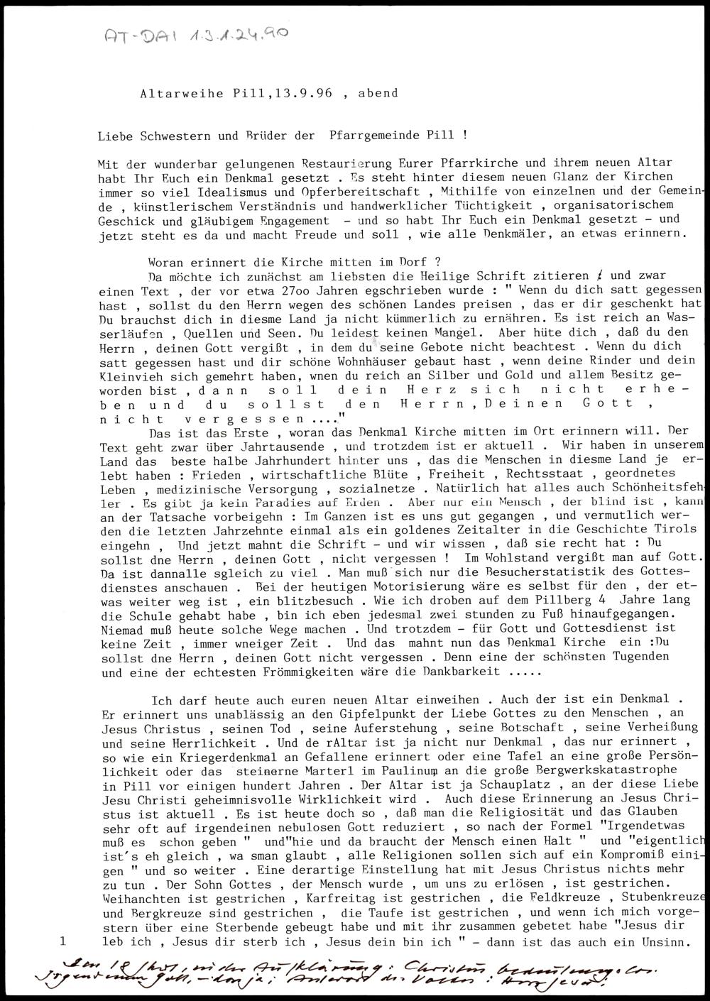 Altarweihe Pill