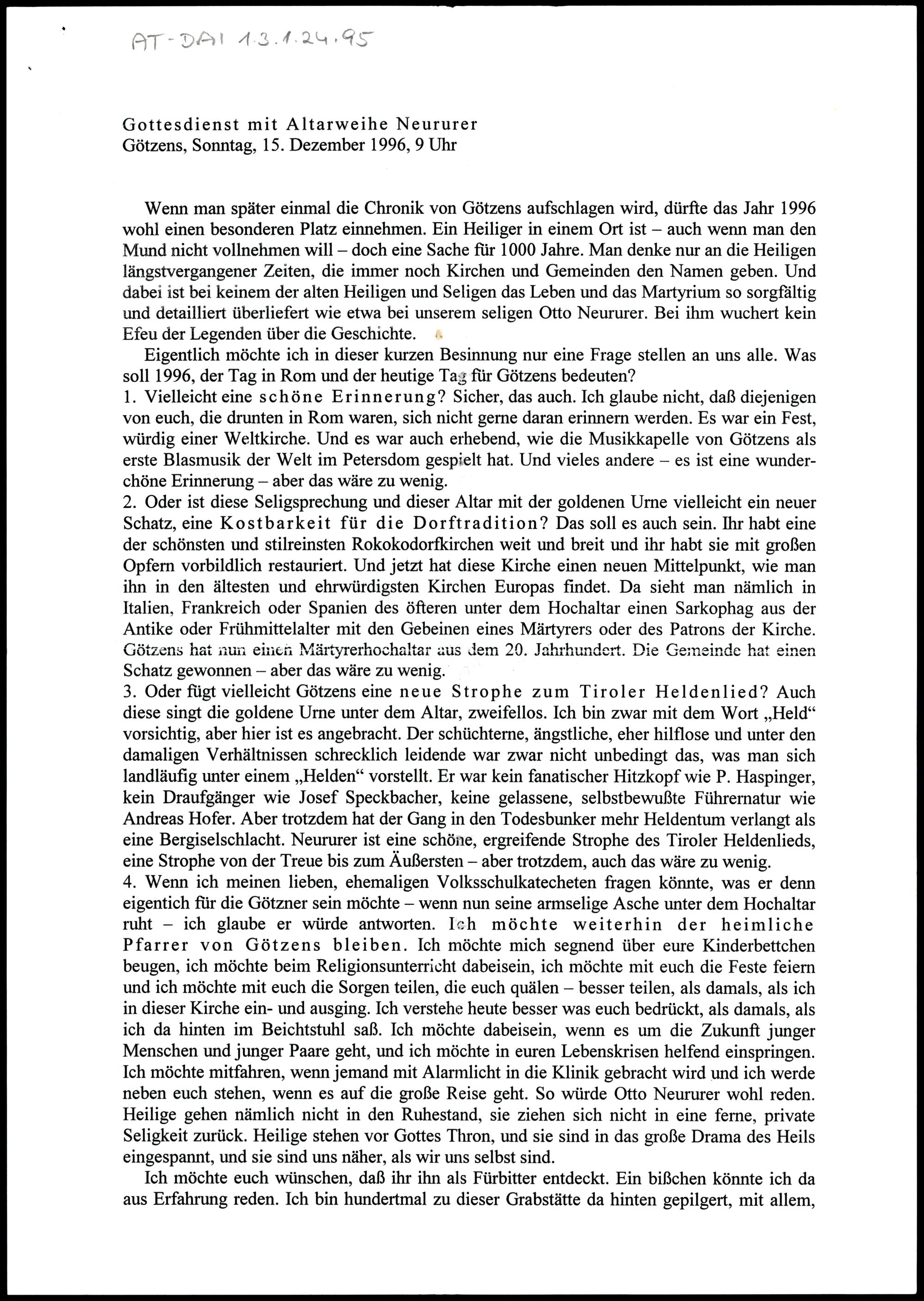 Gottesdienst mit Altarweihe Neururer in Götzens
