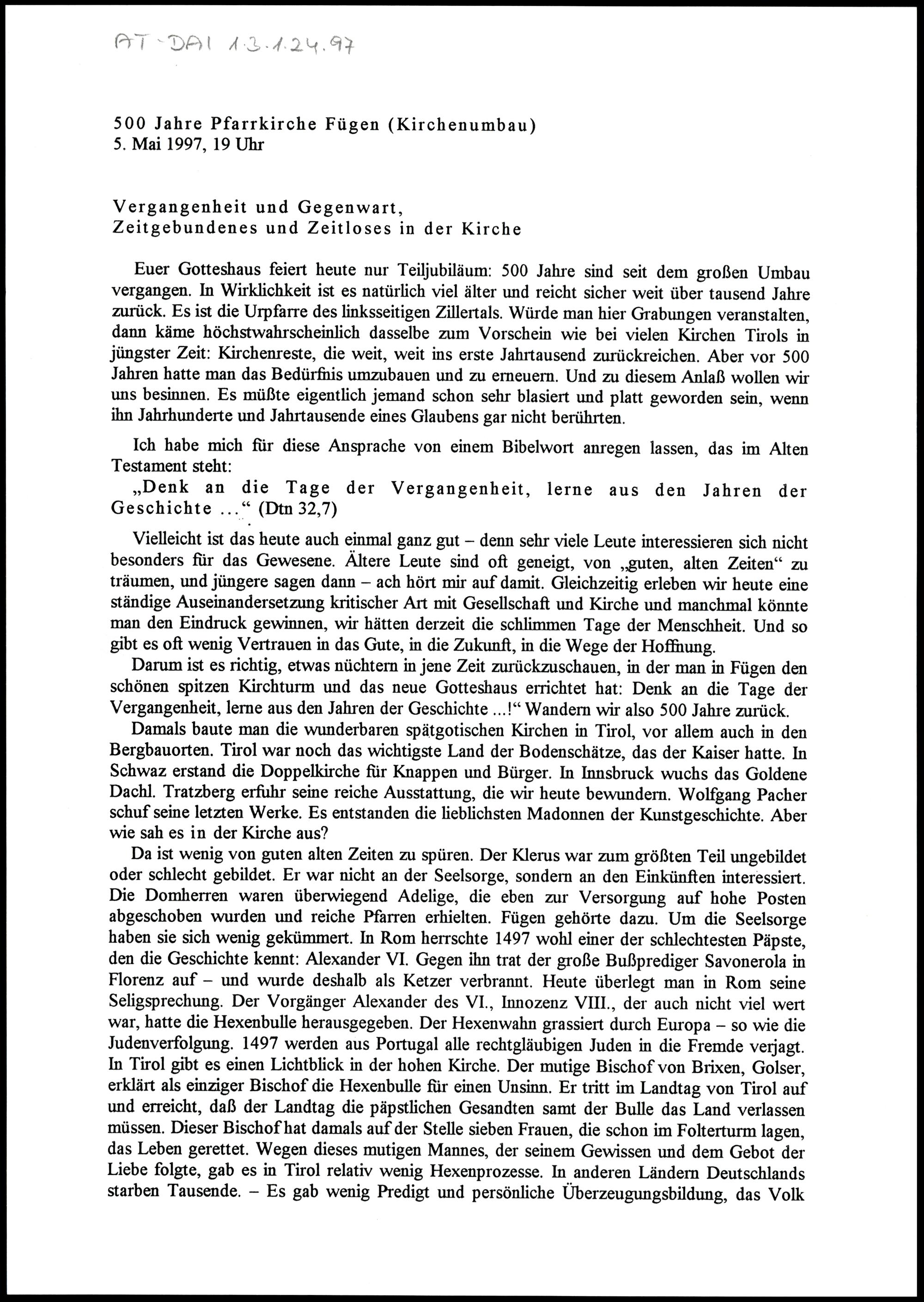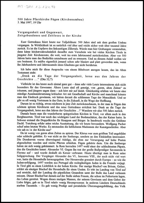 Vergangenheit und Gegenwart, Zeitgebundenes und Zeitloses in der Kirche