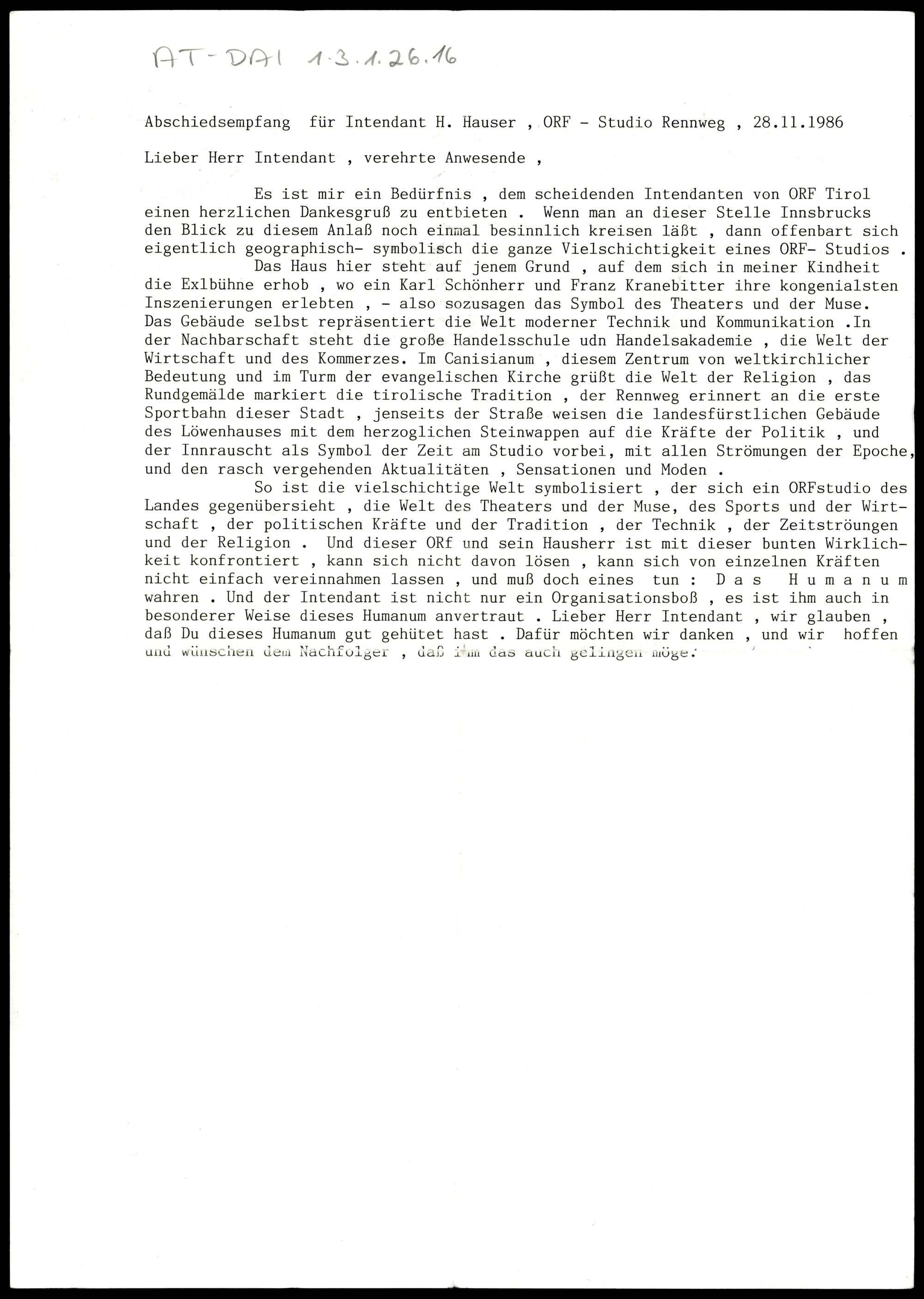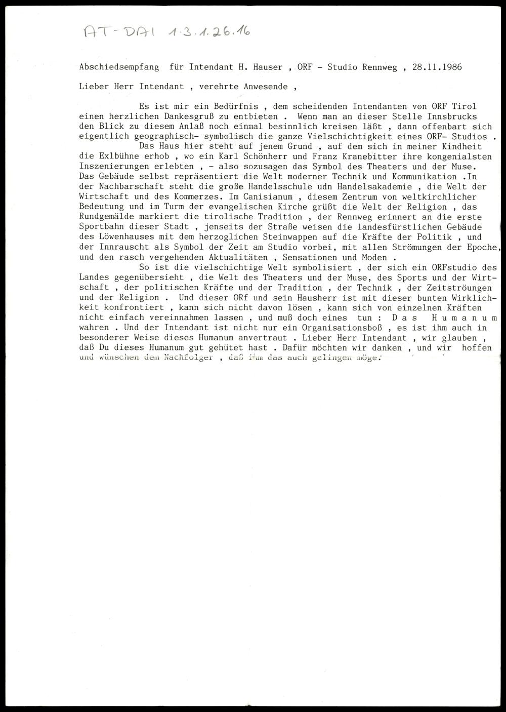 Abschiedsempfang für Intendant H. Hauser