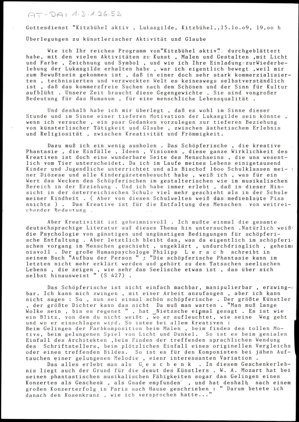 Überlegungen zu künstlerischer Aktivität und Glaube
