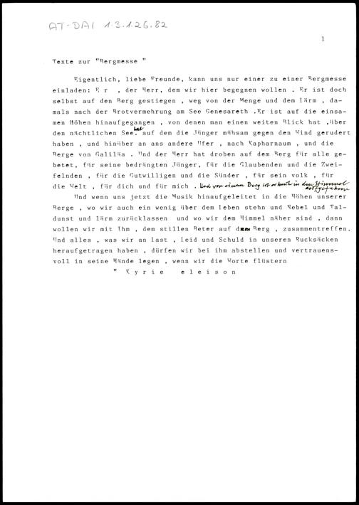 Texte zur "Bergmesse"