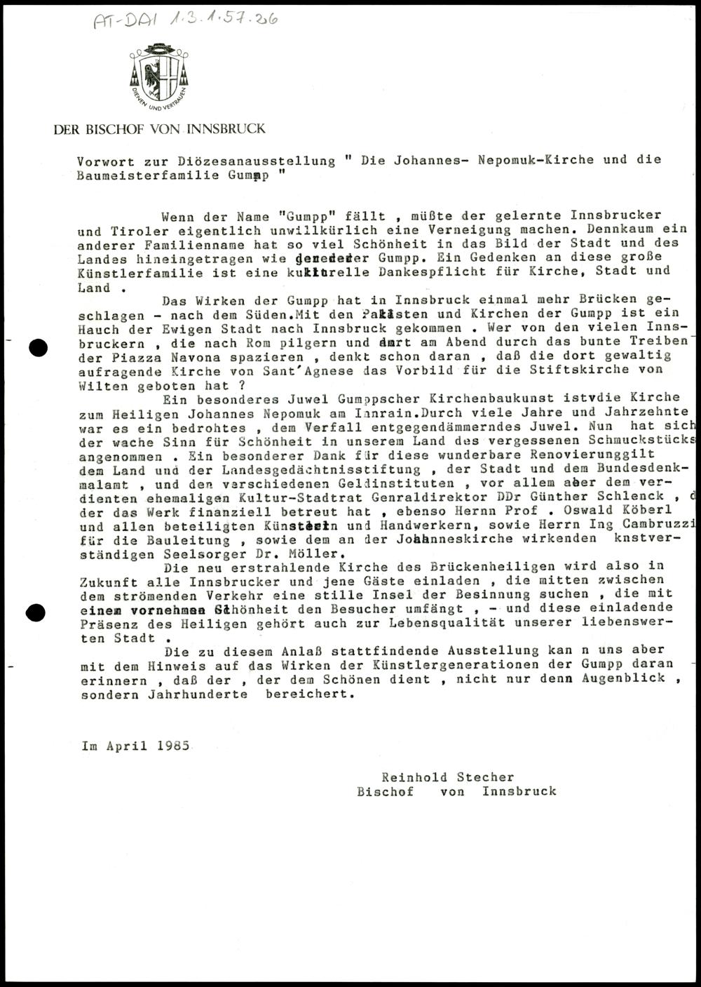 Nachlass Bischof Stecher