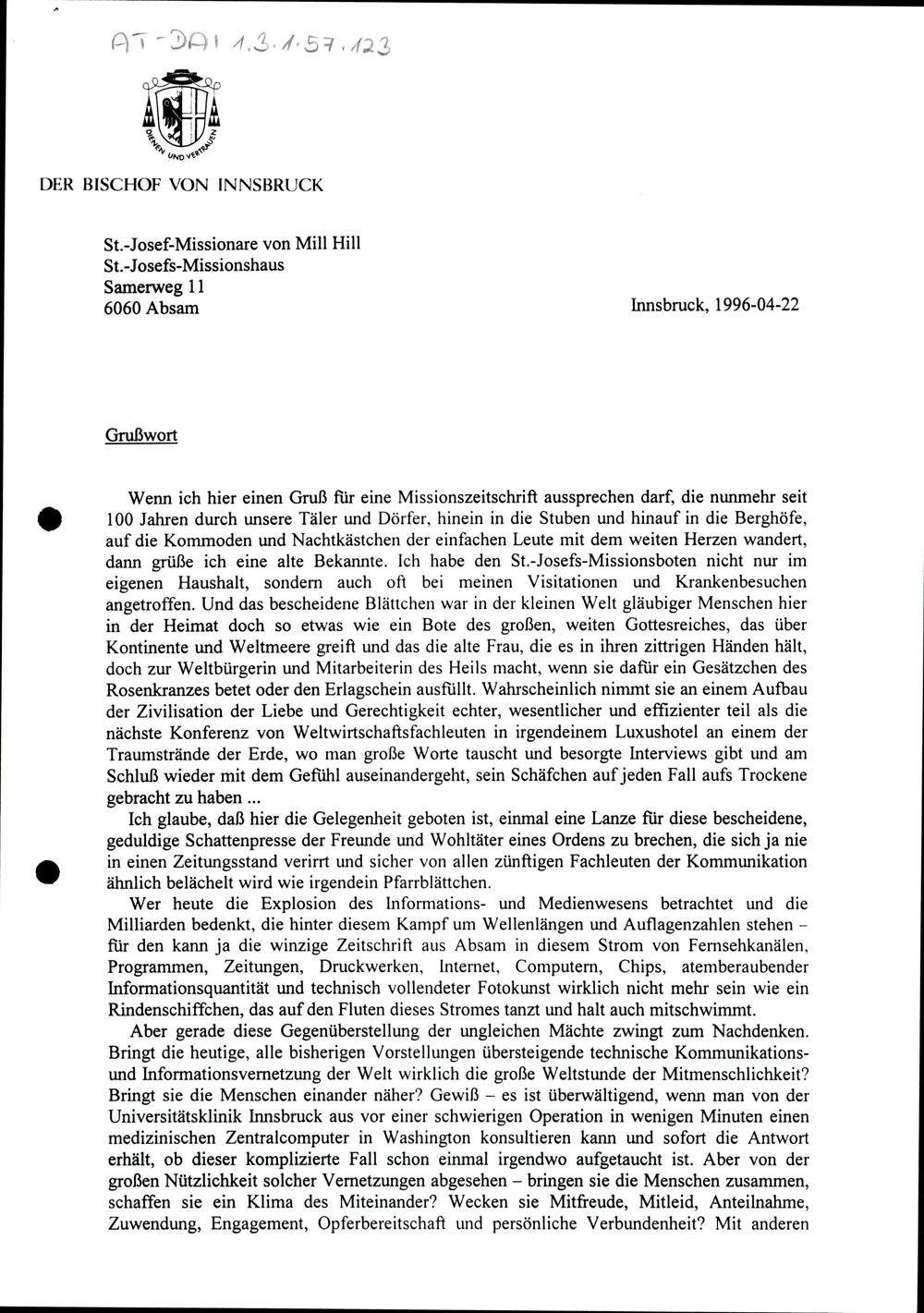 Nachlass Bischof Stecher