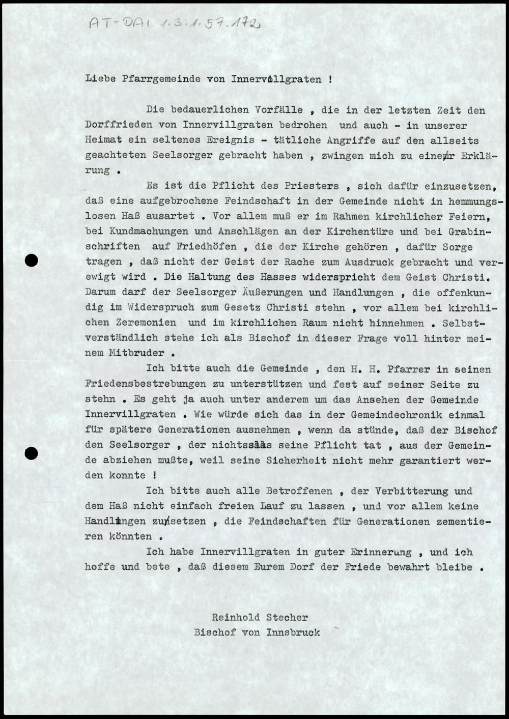 Nachlass Bischof Stecher