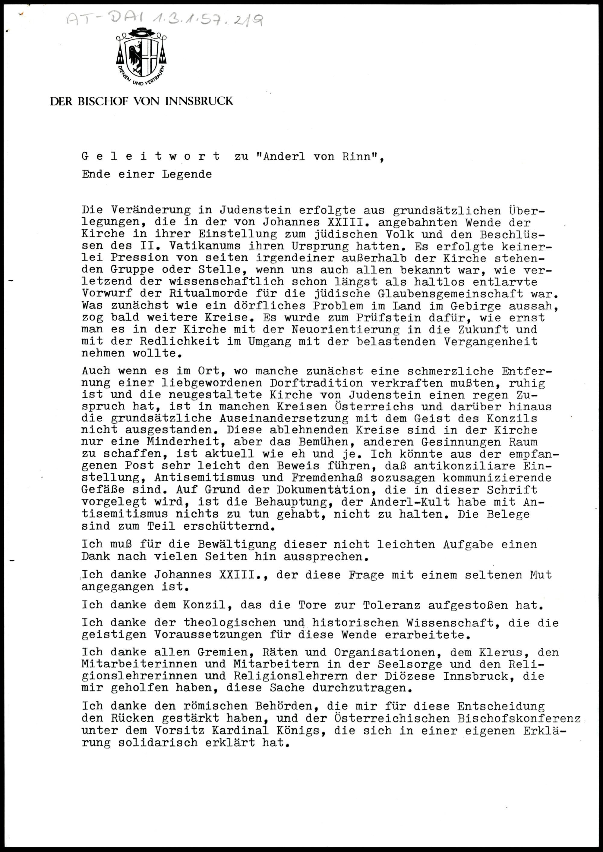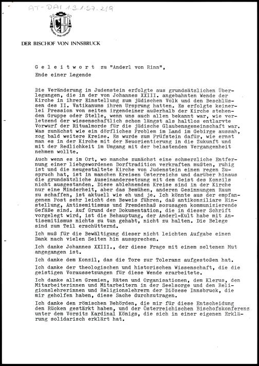 Geleitwort zu "Anderl von Rinn"