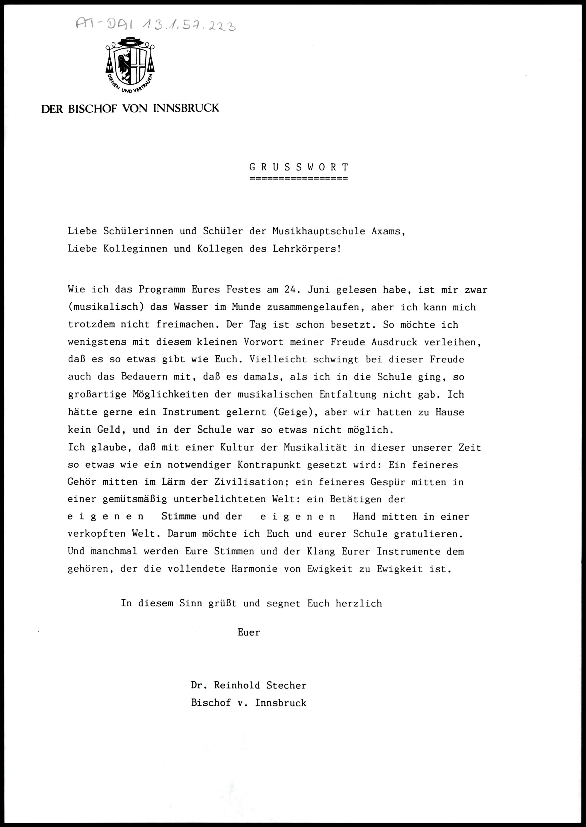 Nachlass Bischof Stecher