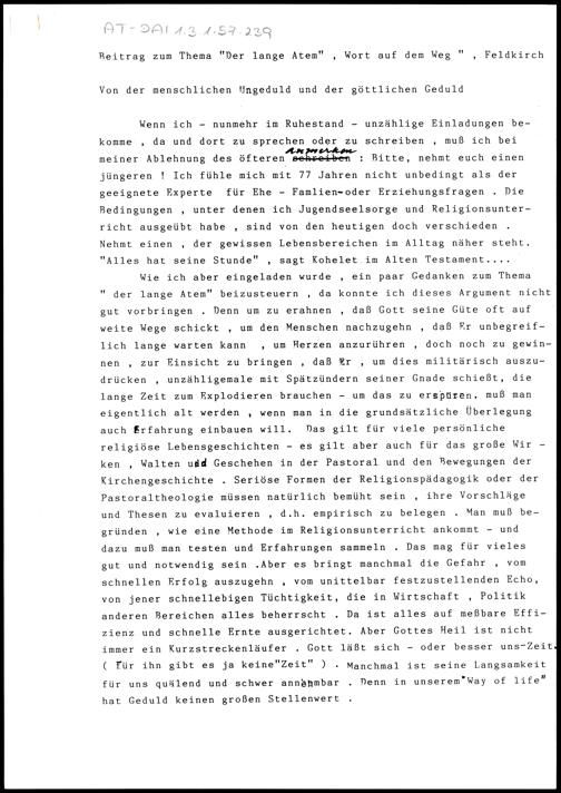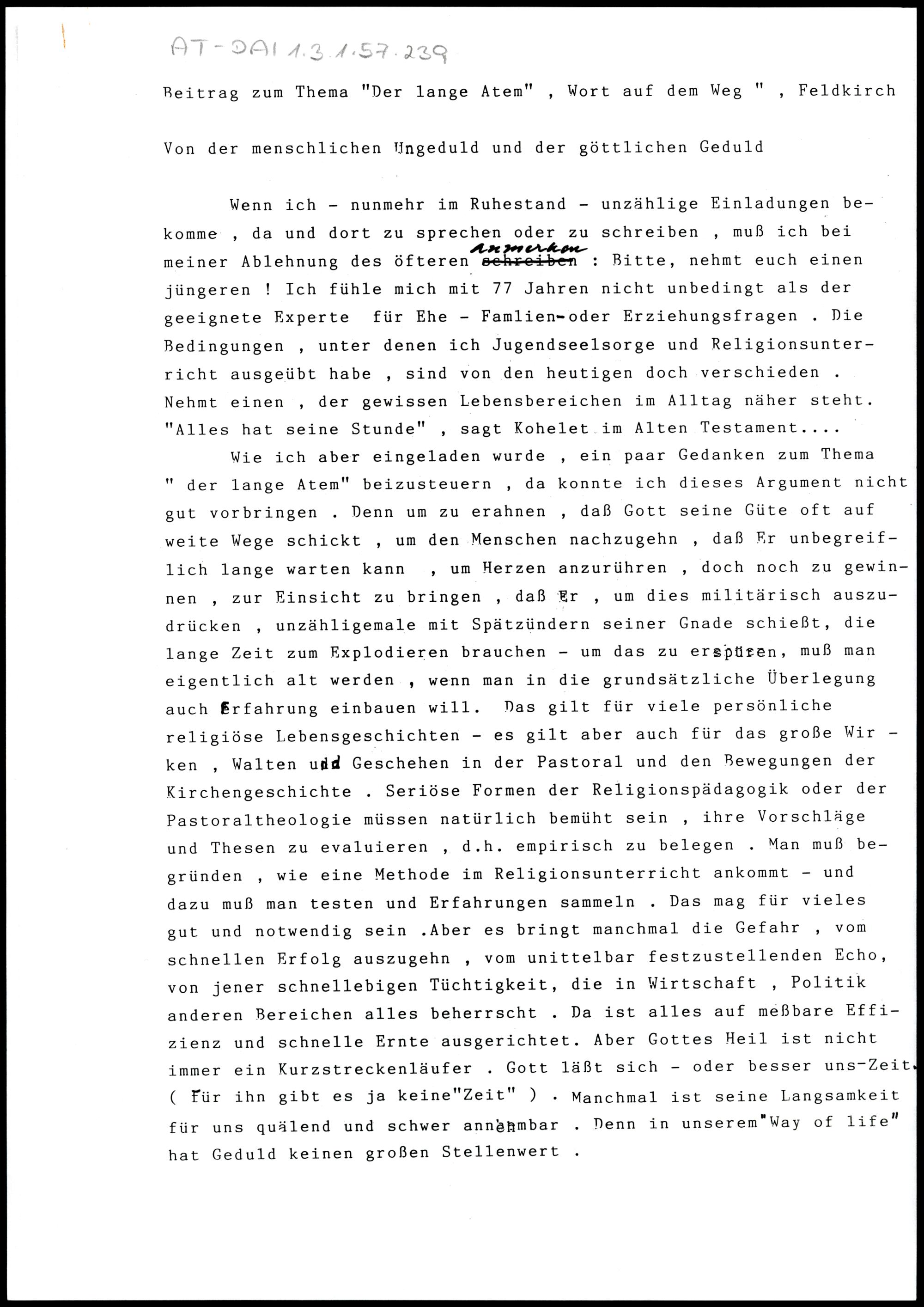 Beitrag zum Thema "Der lange Atem, Wort auf dem Weg"