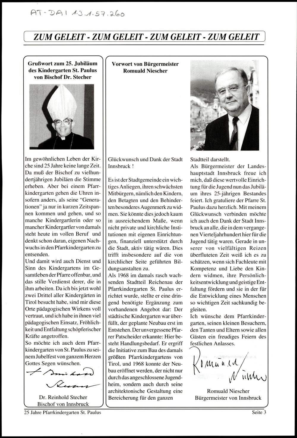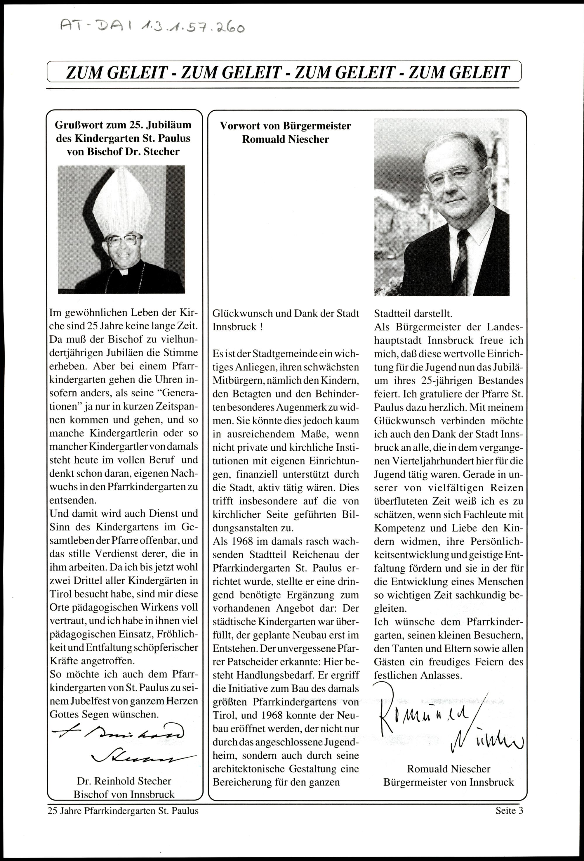 Vorworte von Bischof Stecher und Bürgermeister Niescher