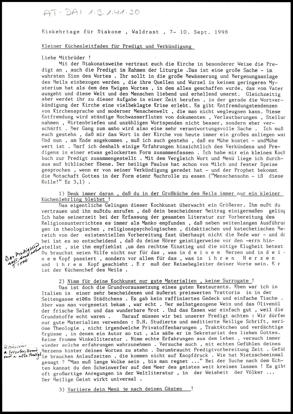 Kleiner Küchenleitfaden für Predigt und Verkündigung