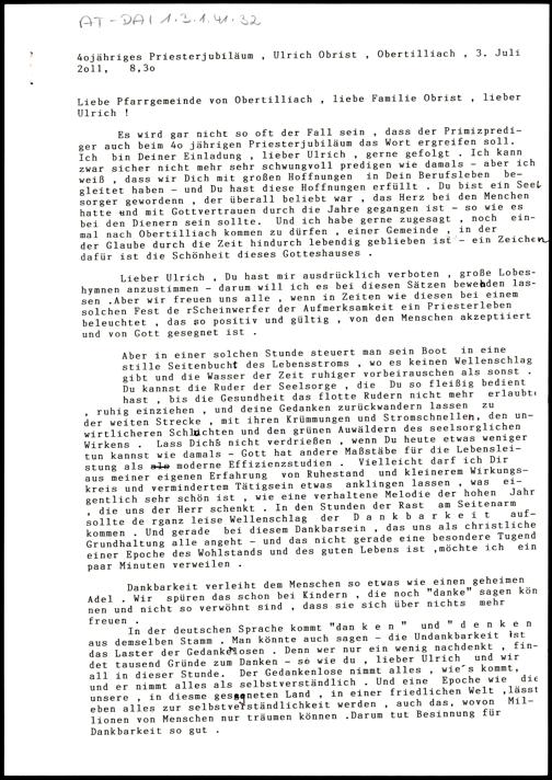 40-jähriges Priesterjubiläum Ulrich Obrist