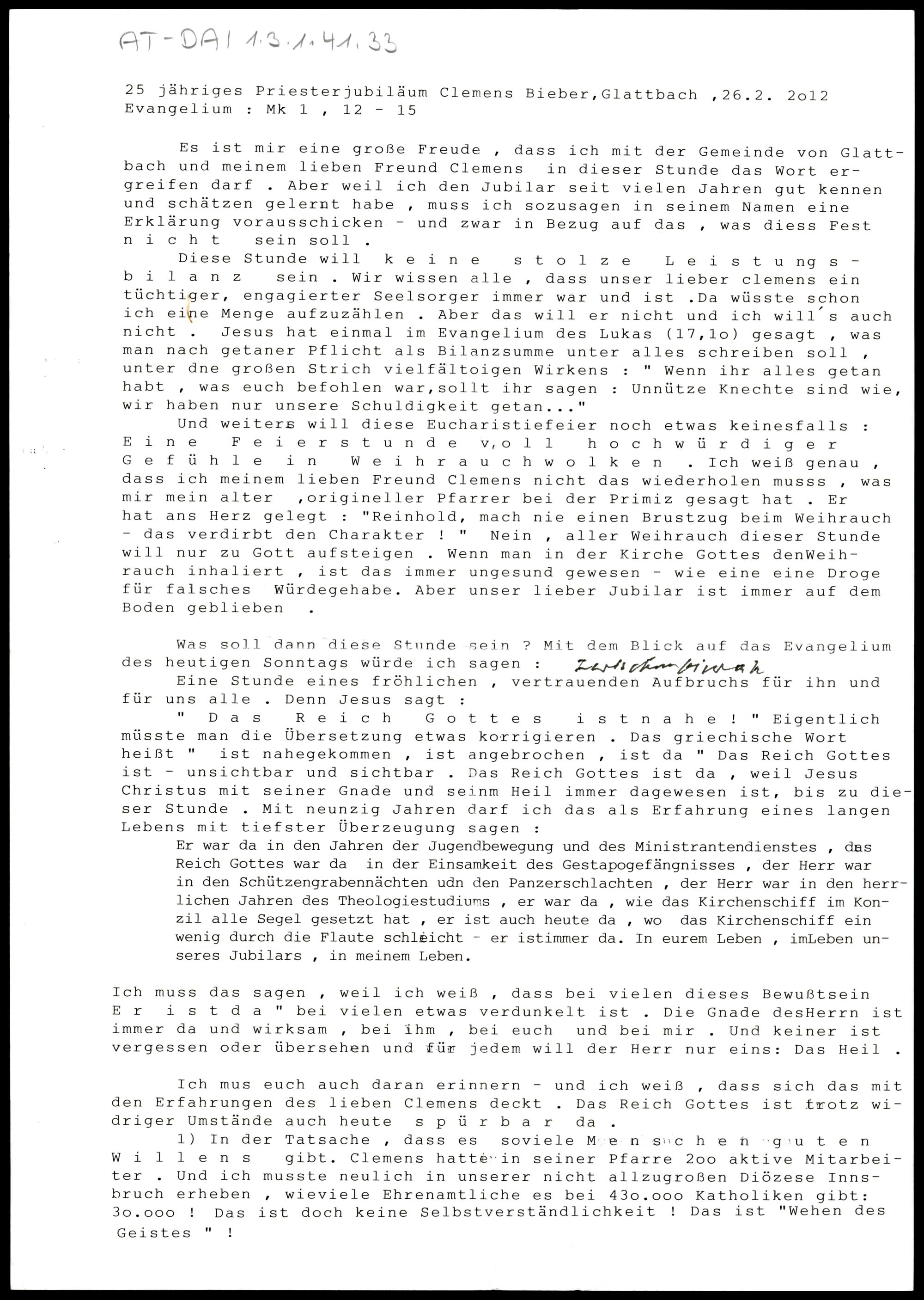25-jähriges Priesterjubiläum Clemens Bieber