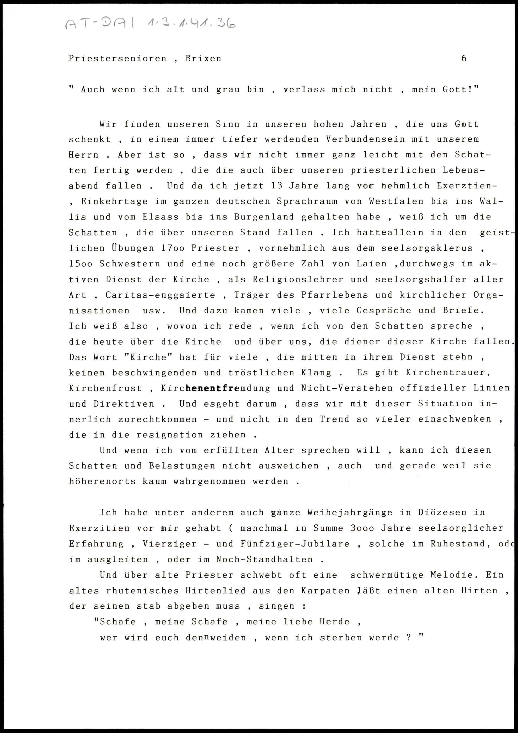 "Auch wenn ich alt und grau bin, verlass mich nicht, mein Gott!"