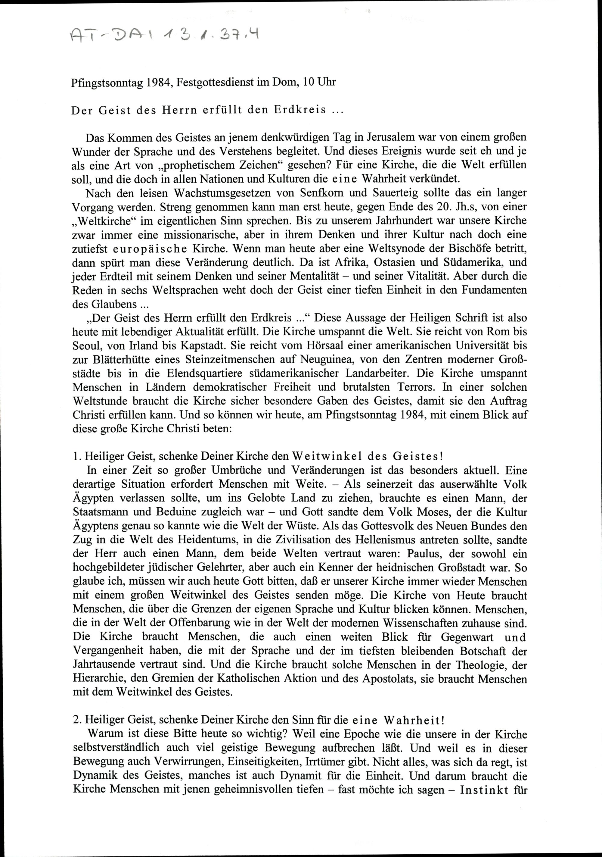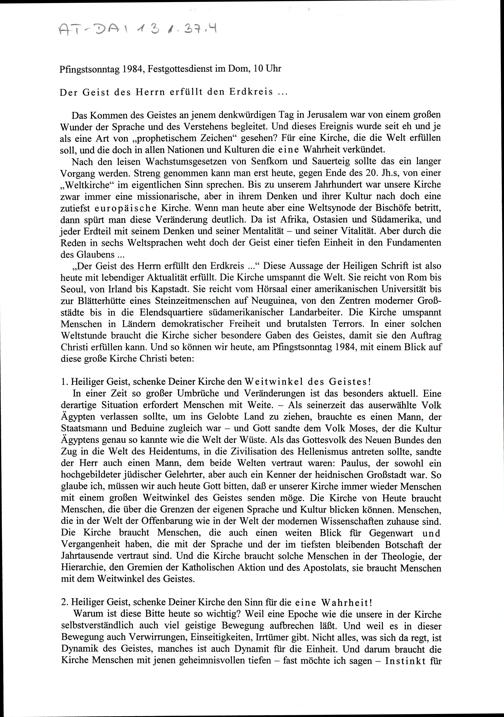 Der Geist des Herrn erfüllt den Erdkreis.....