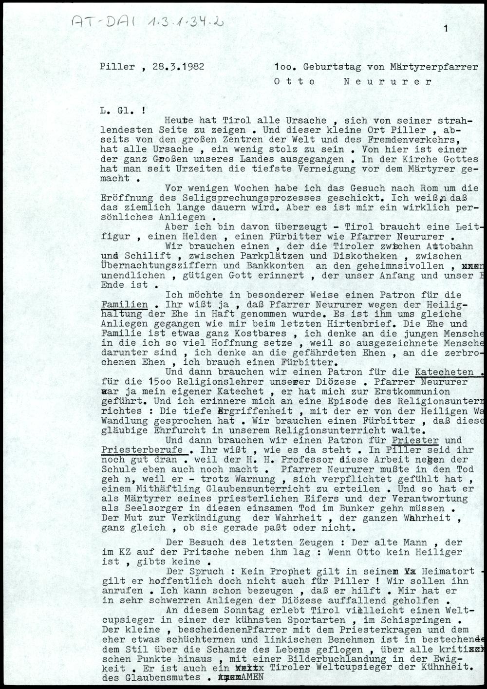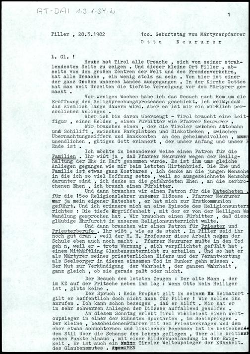 100. Geburtstag von Märtyrerpfarrer Otto Neururer