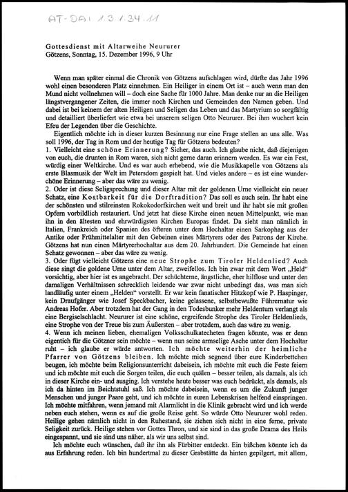 Gottesdienst mit Altarweihe Neururer