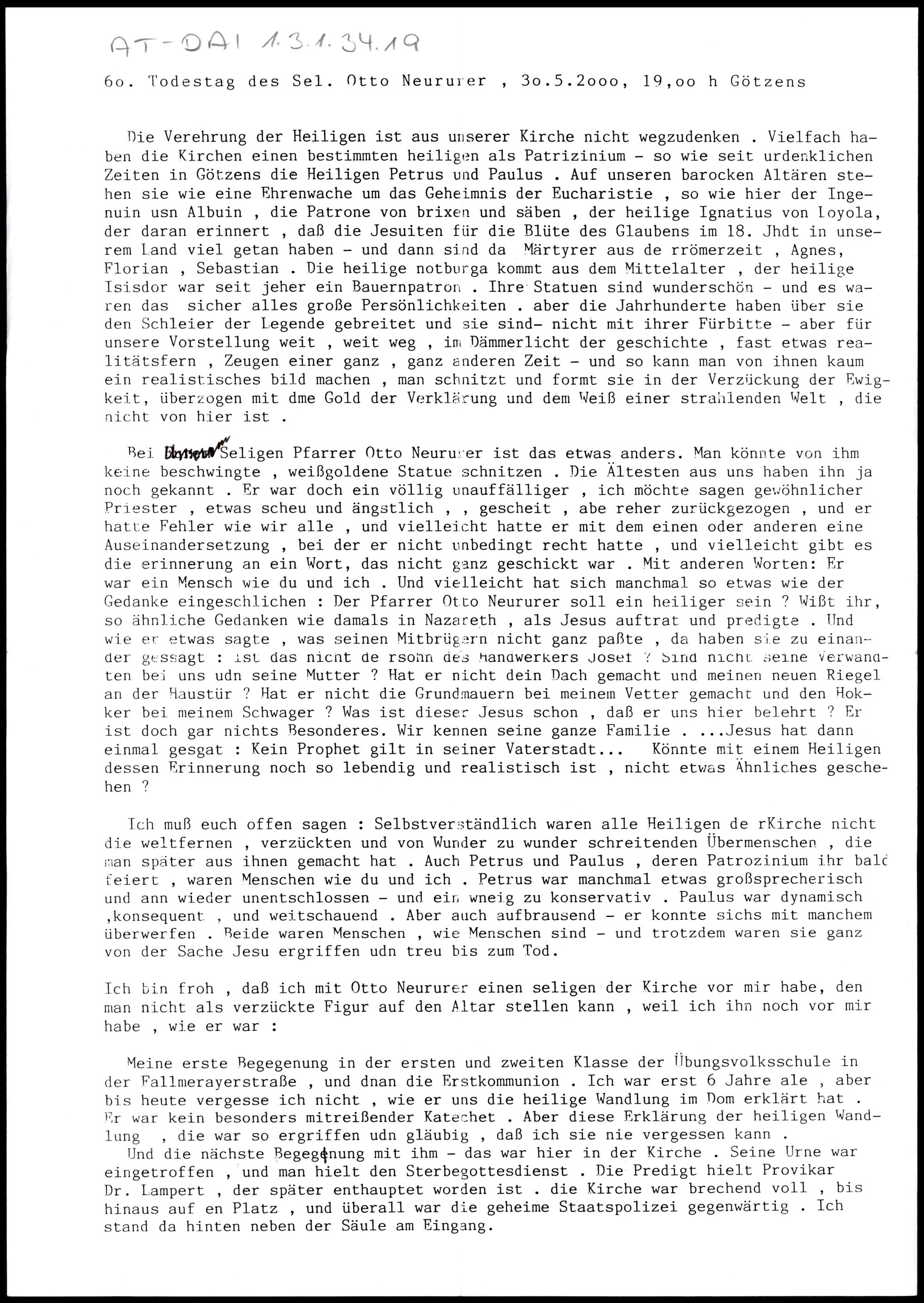 60. Todestag des Sel. Otto Neururer