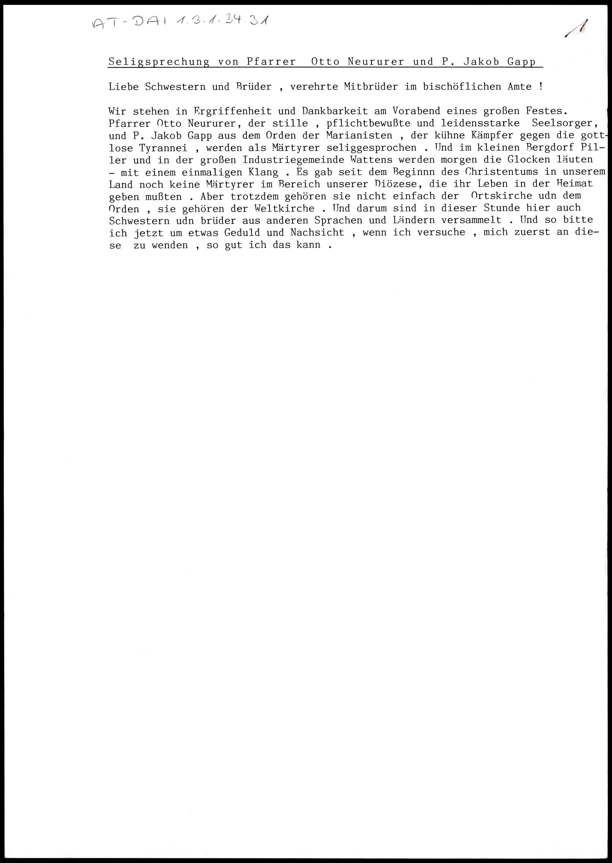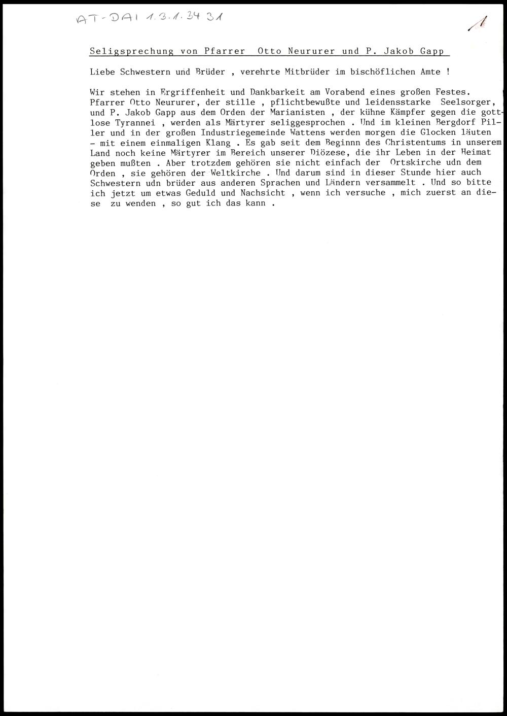 Seligsprechung von Pfarrer Otto Neururer und P. Jakob Gapp