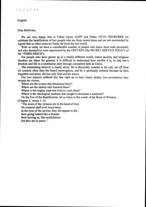 Seligsprechung von Pfarrer Otto Neururer und P. Jakob Gapp