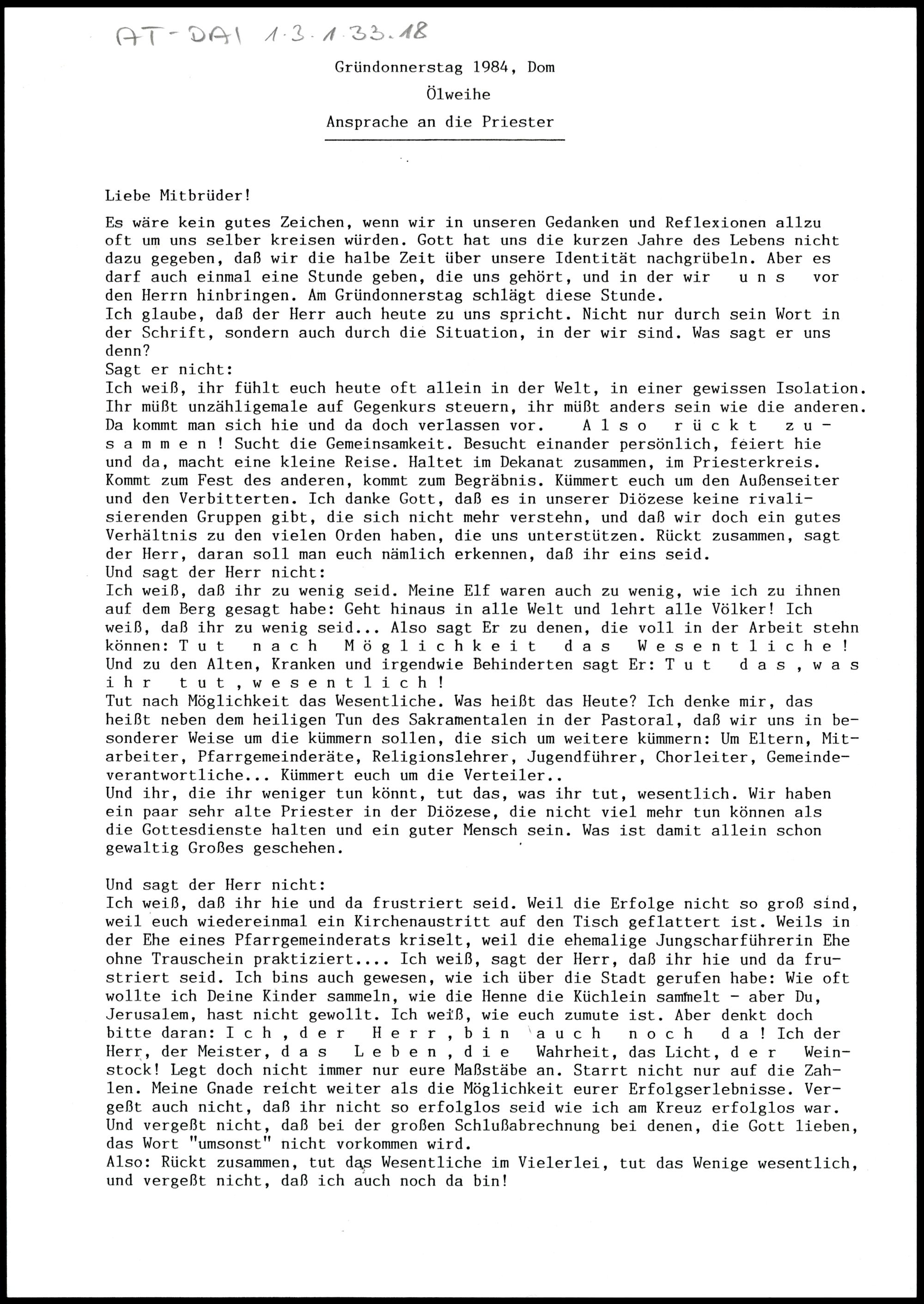 Ansprache an die Priester
