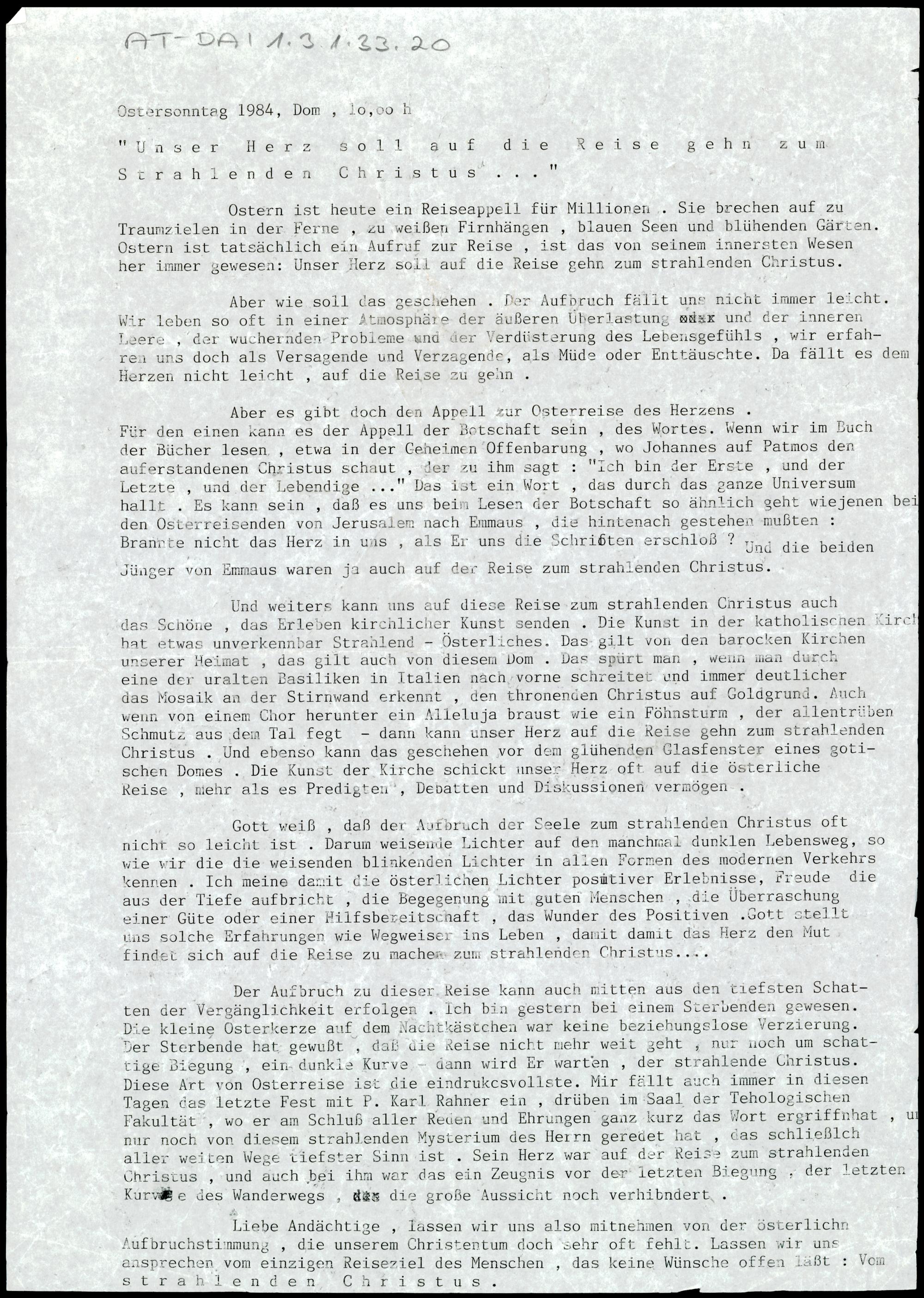 "Unser Herz soll auf die Reise gehn zum Strahlenden Christus....."