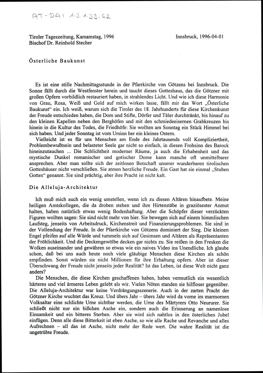Nachlass Bischof Stecher