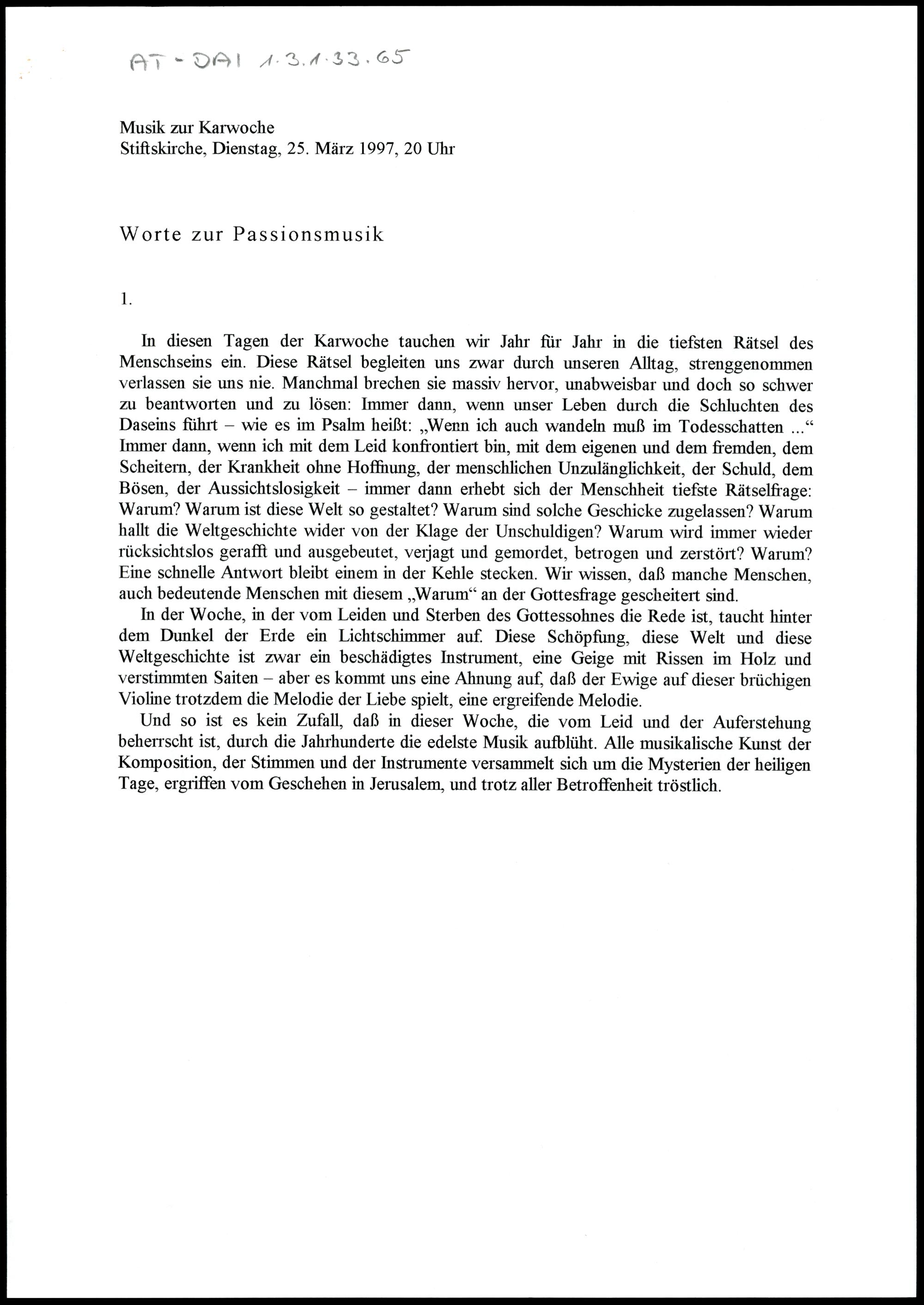Worte zur Passionsmusik