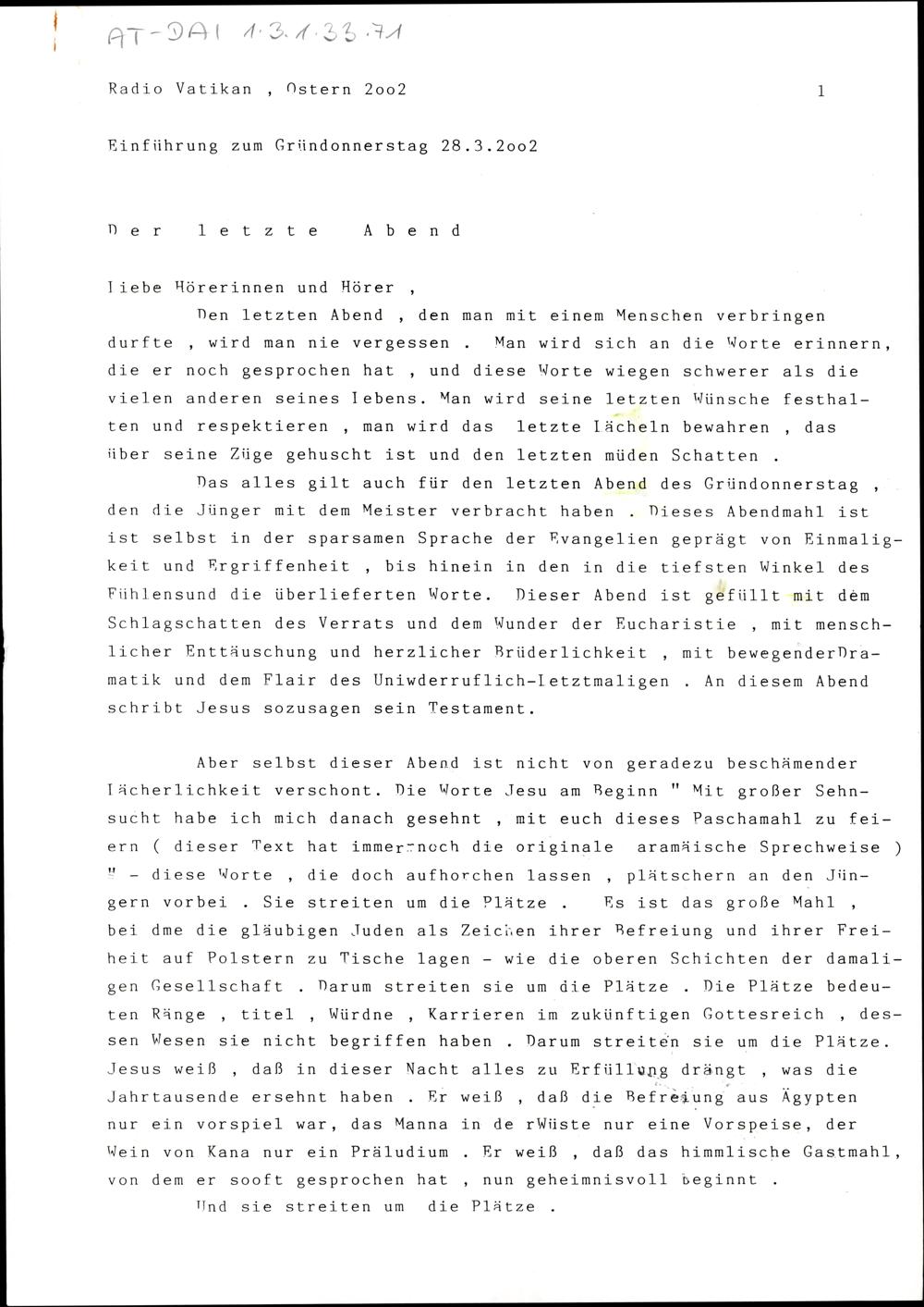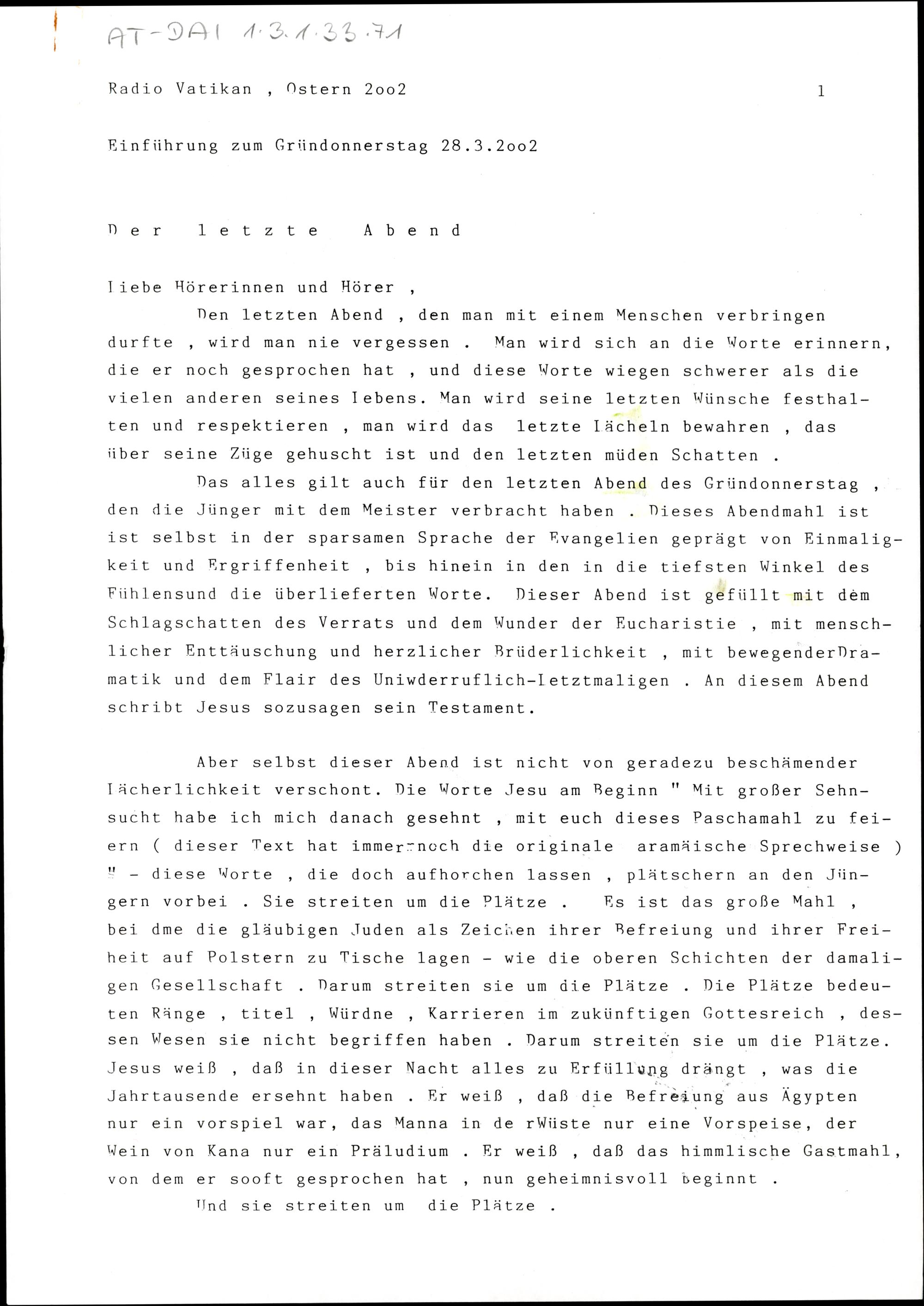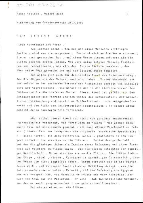 Einführung zum Gründonnerstag, Karfreitag, Karsamstag und Ostersonntag