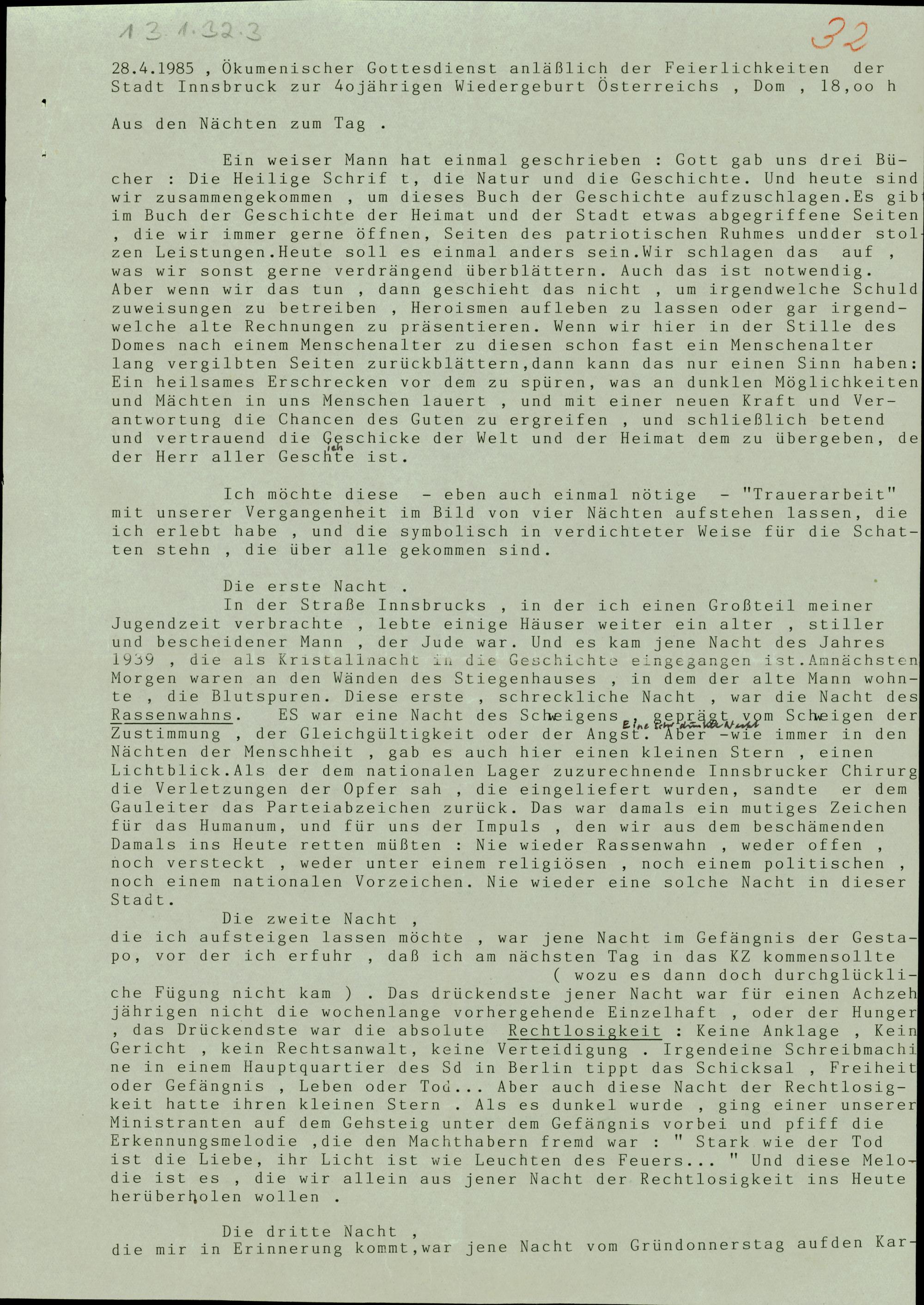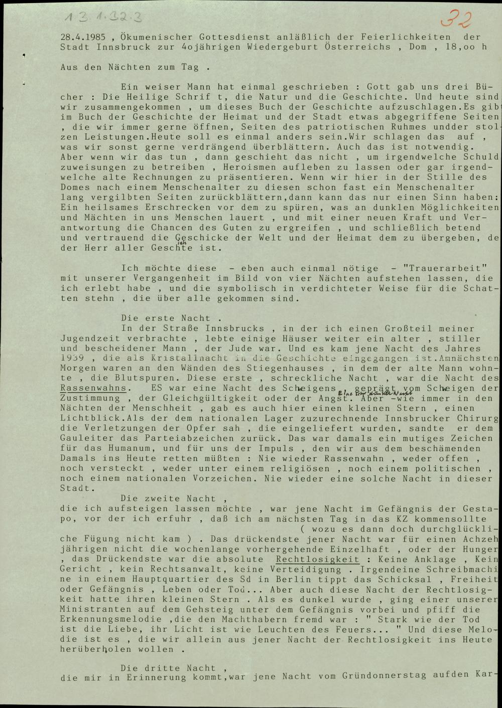 Ökumenischer Gottesdienst anläßlich der 40-Jahr-Feier der Wiedergeburt Österreichs