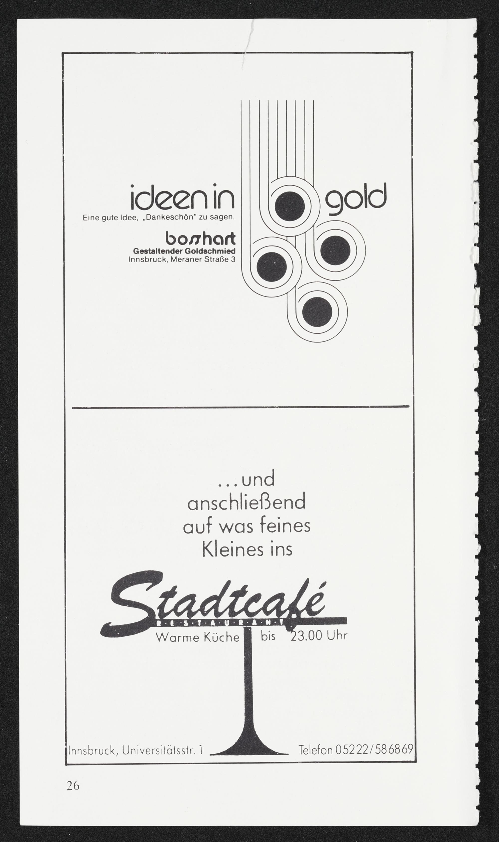 Seite mit Werbung aus der Veranstaltungsbroschüre
