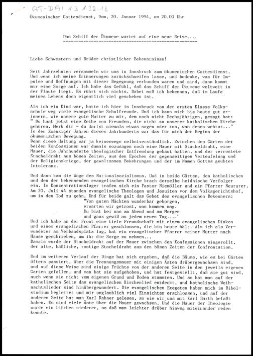 Das Schiff der Ökumene wartet auf eine neue Brise.....