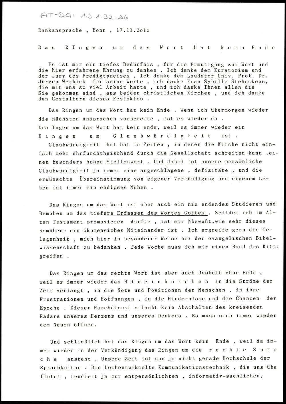 Das Ringen um das Wort hat kein Ende
