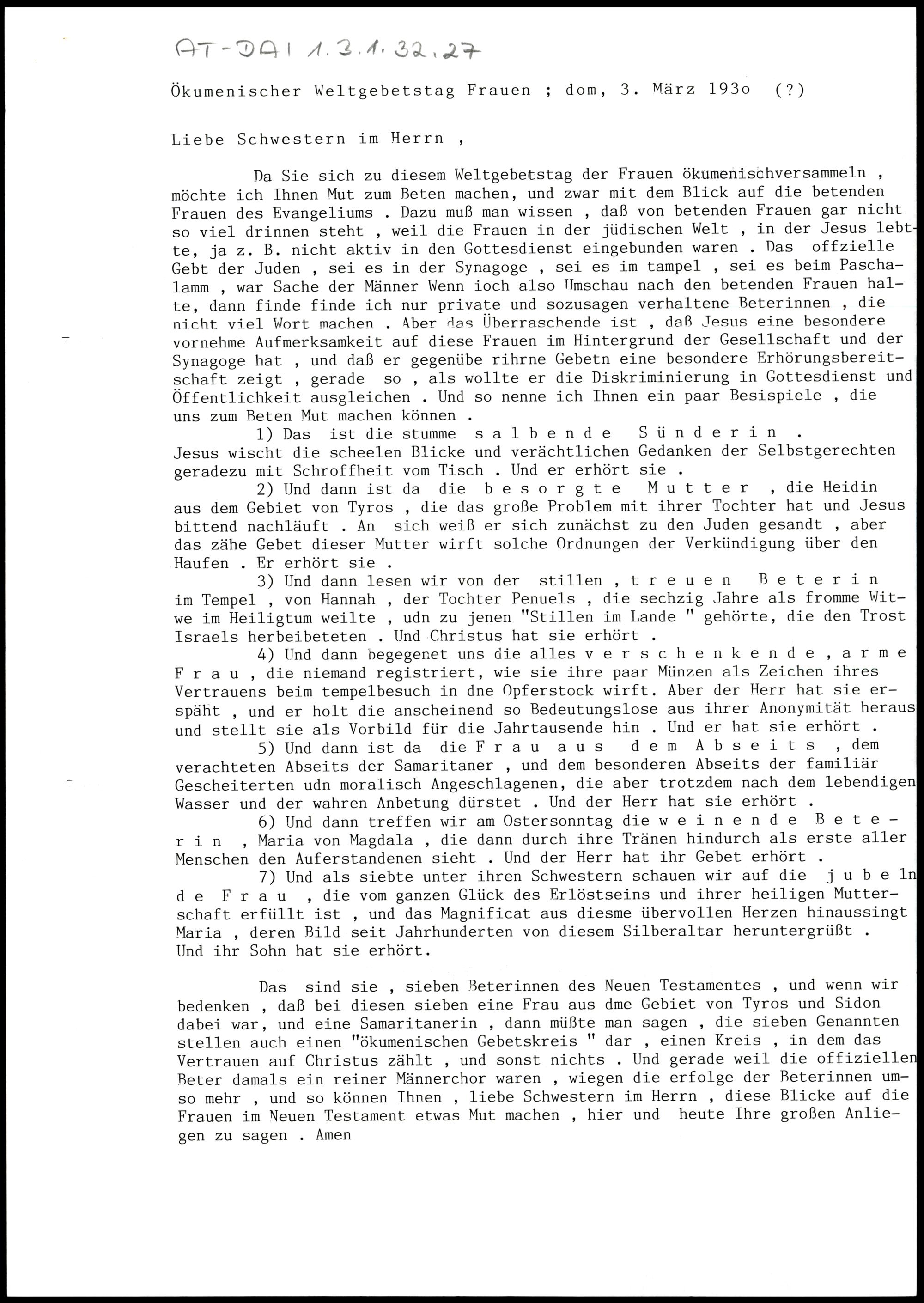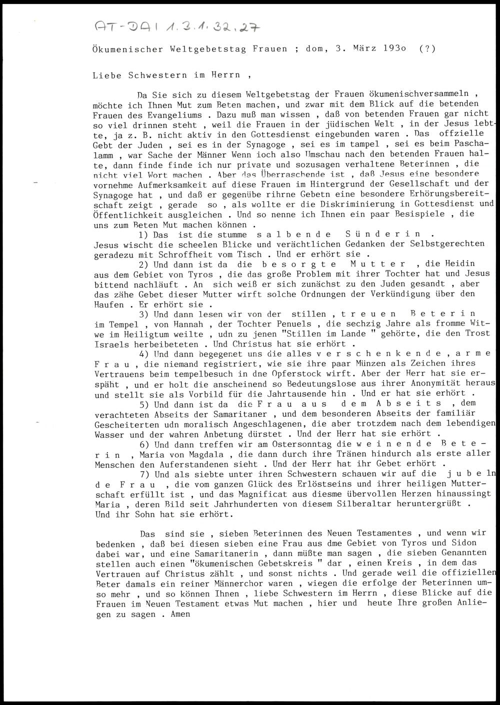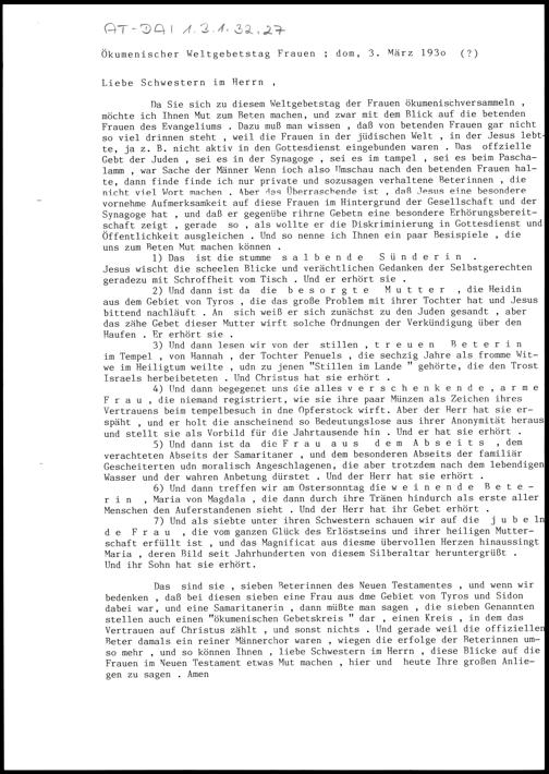 Ökumenischer Weltgebetstag der Frauen