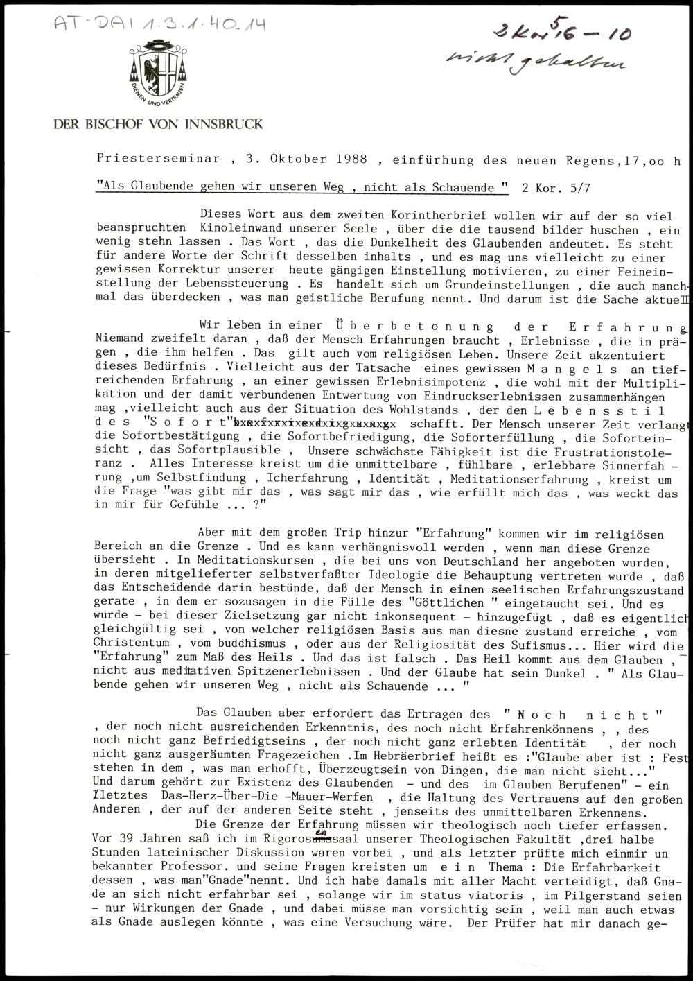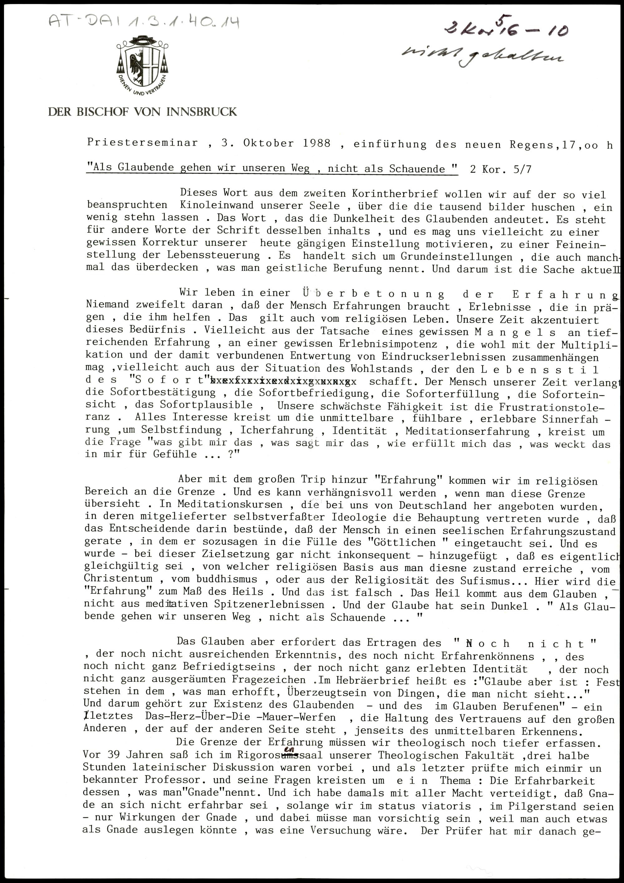 Nachlass Bischof Stecher