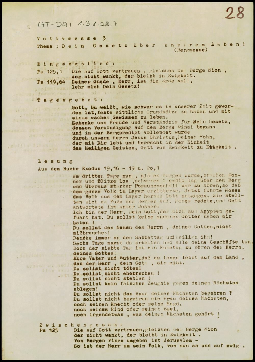 Eingangslied, Tagesgebet, Lesung, Zwischengesang