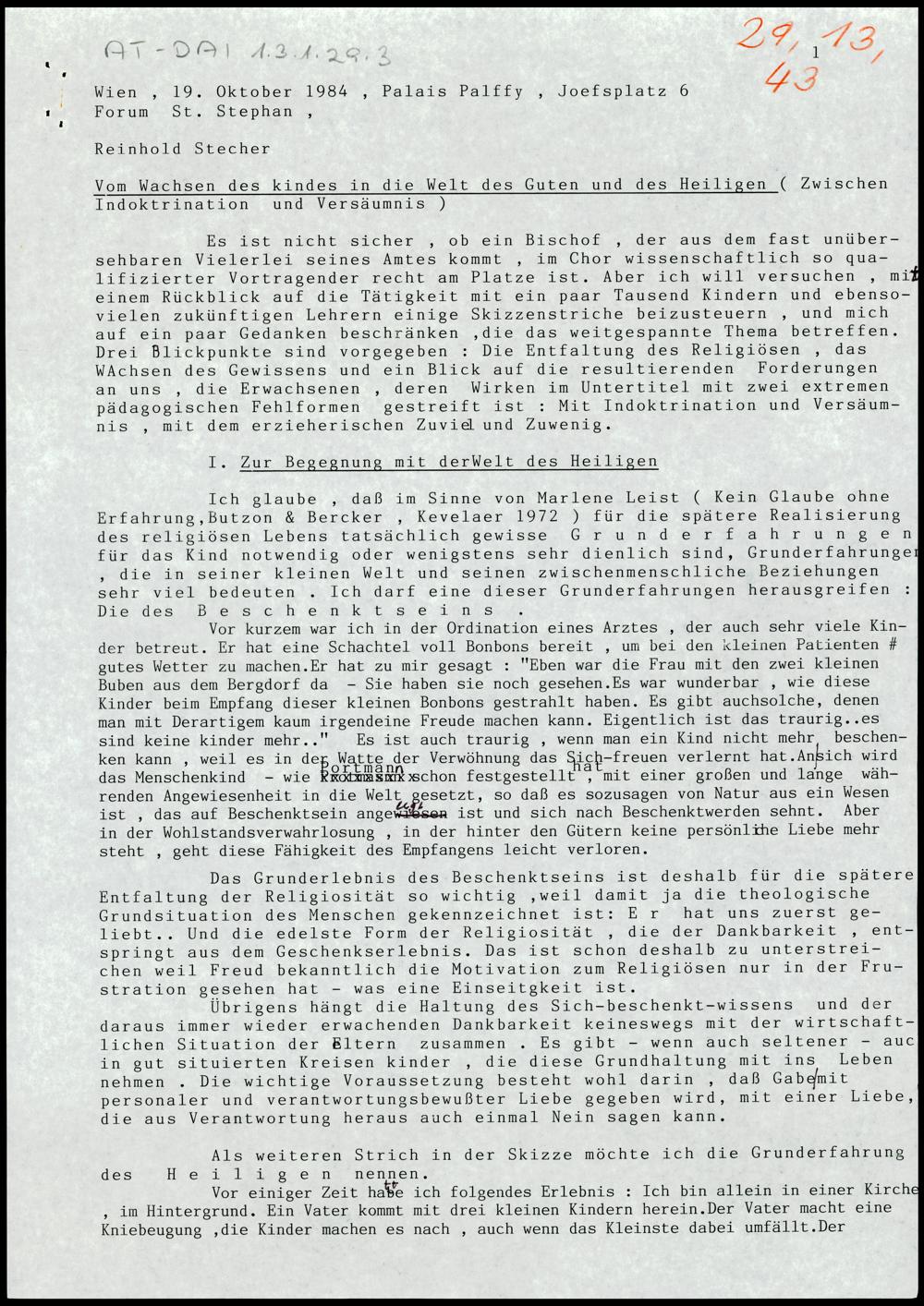Nachlass Bischof Stecher