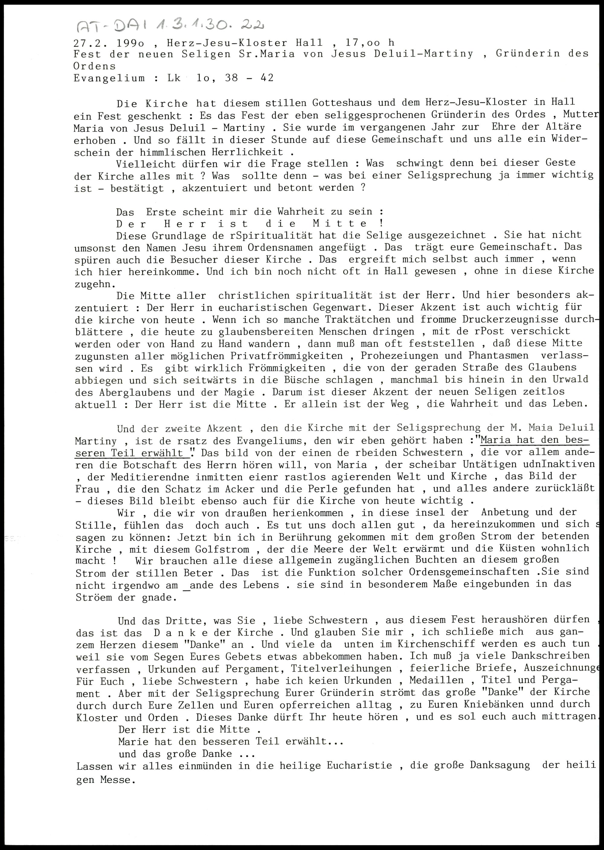 Fest der neuen Seligen Sr. Maria von Jesus Deluil-Martiny, Gründerin des Ordens
