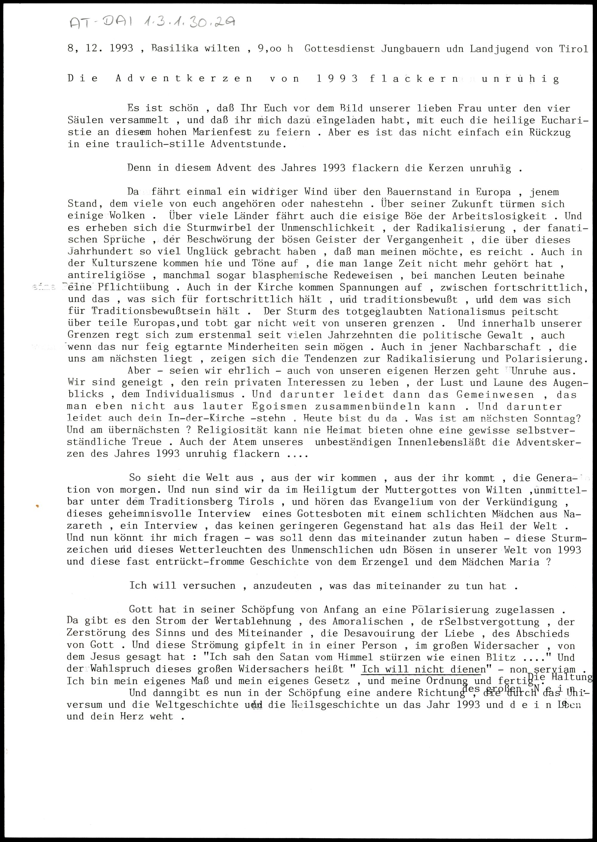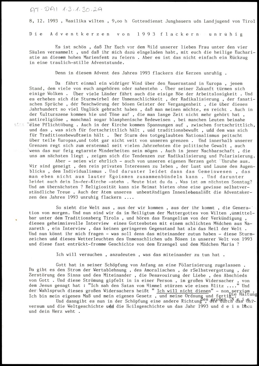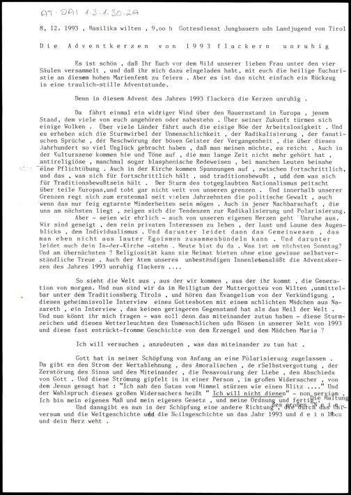 Die Adventkerzen von 1993 flackern unruhig